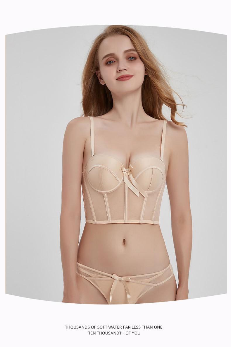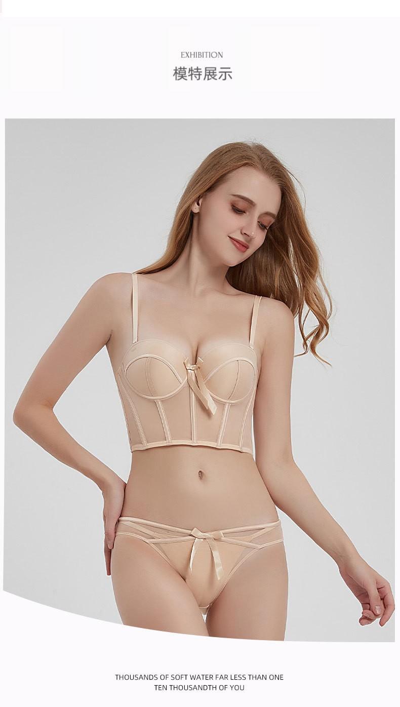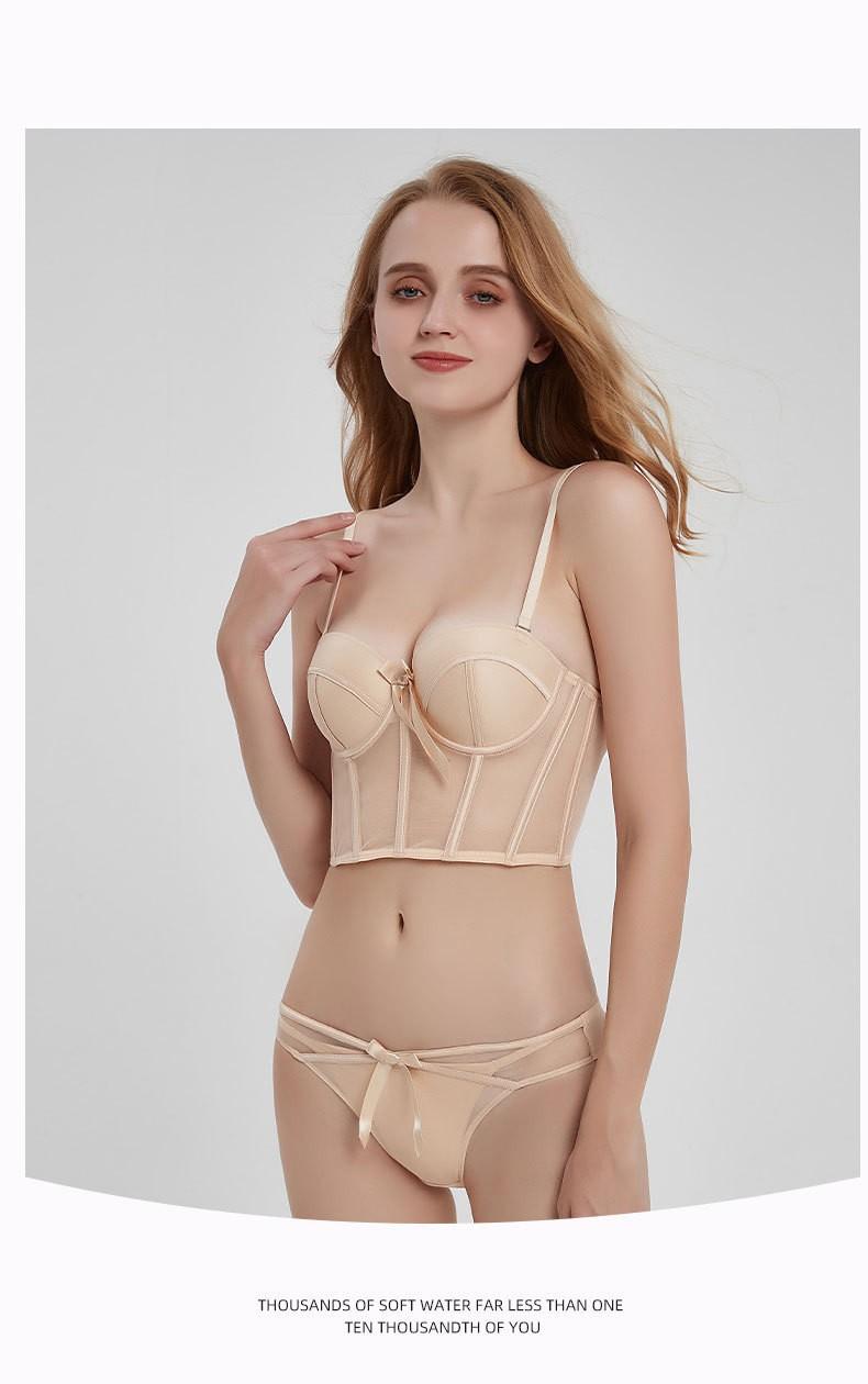 Íntimos estilo francés, Íntimos con ballenas estilo chaleco con lazo femenino, Pechos pequeños lucen más grandes, Set de brasier push-up
