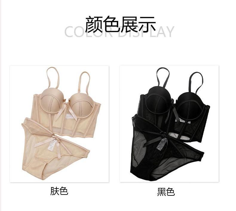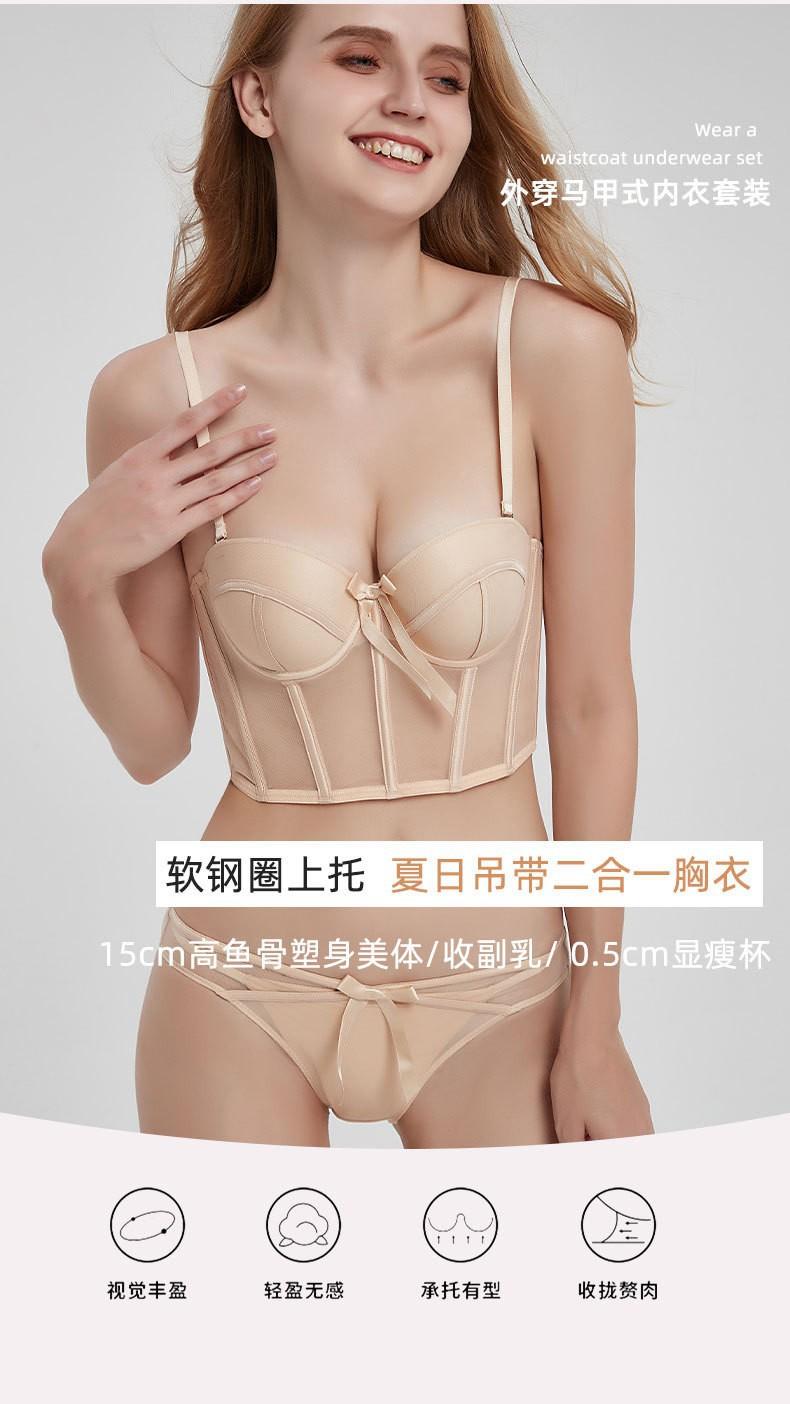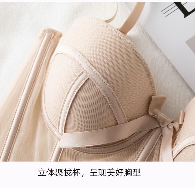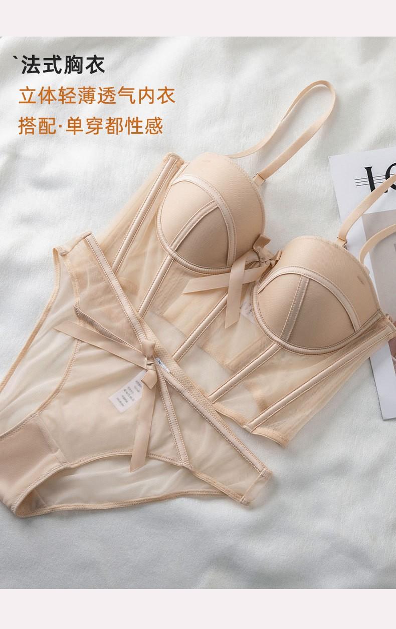 Íntimos estilo francés, Íntimos con ballenas estilo chaleco con lazo femenino, Pechos pequeños lucen más grandes, Set de brasier push-up