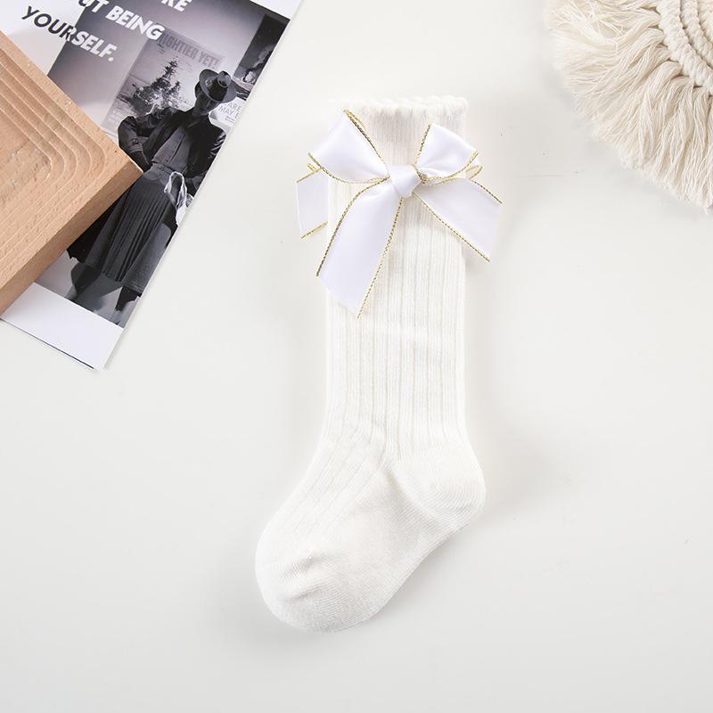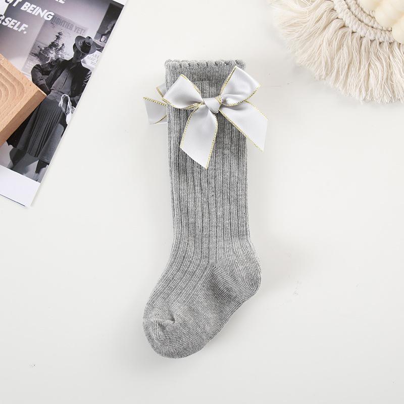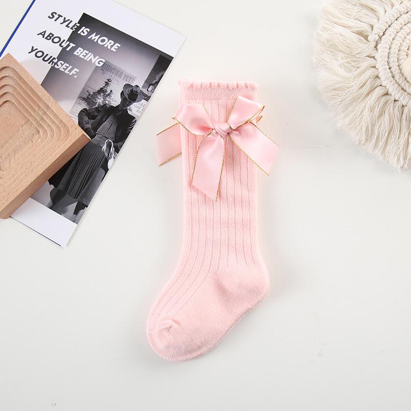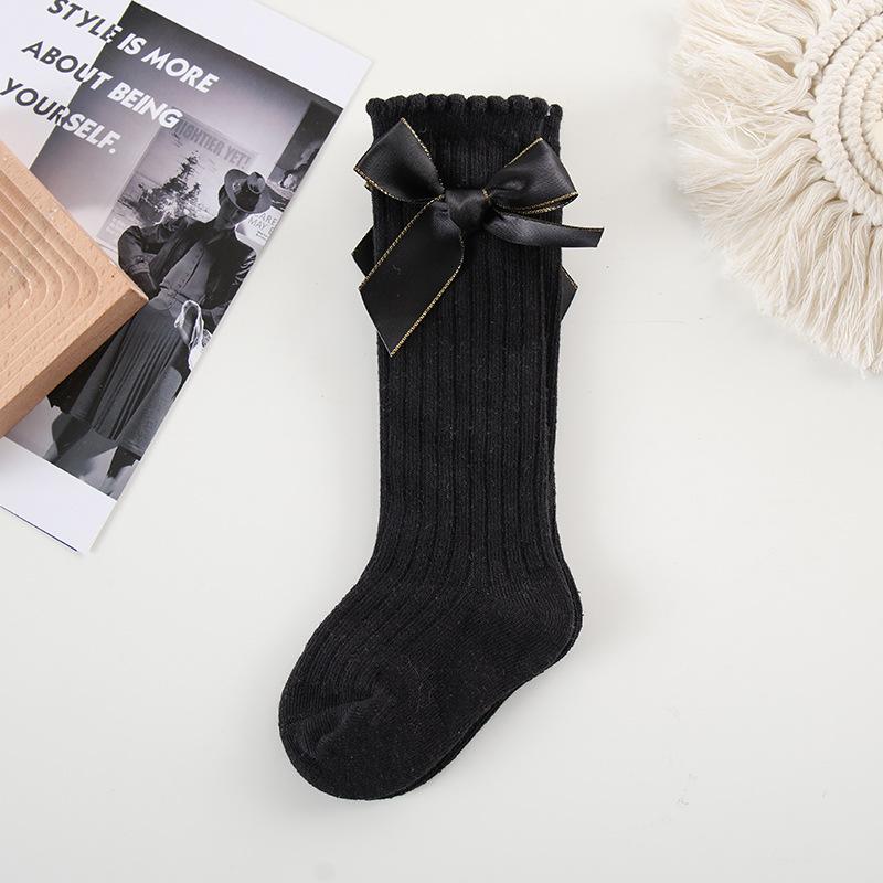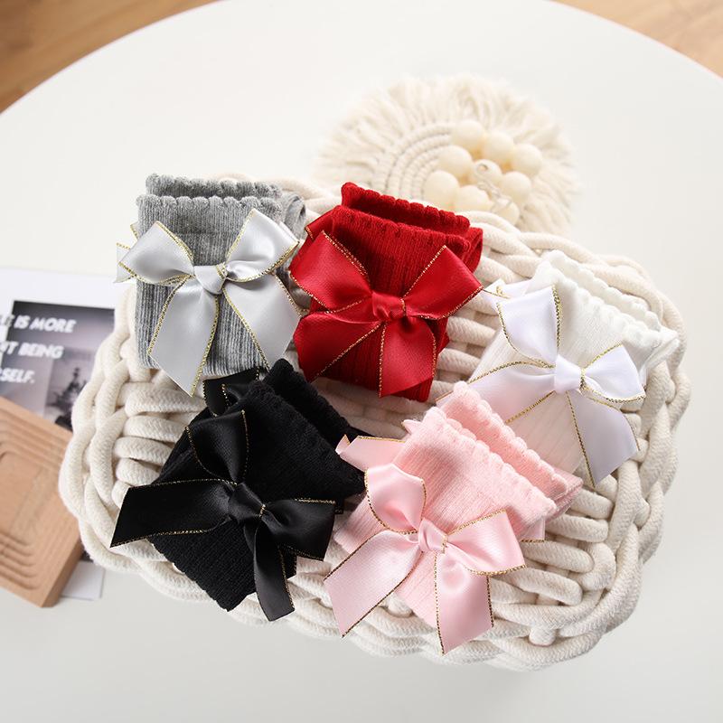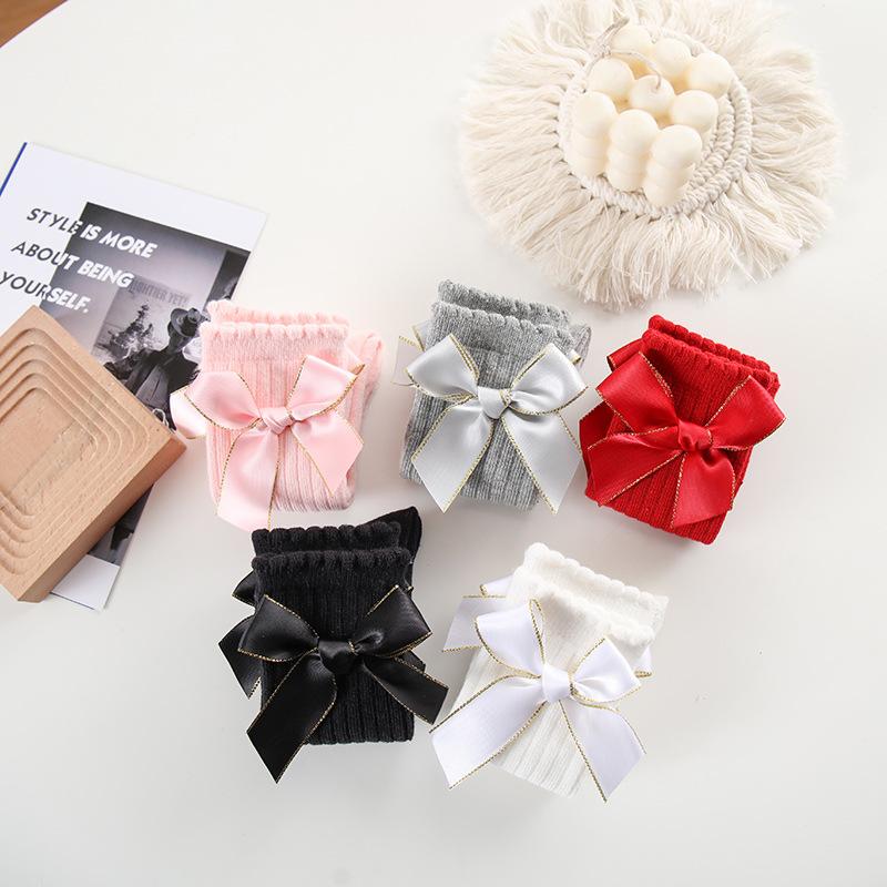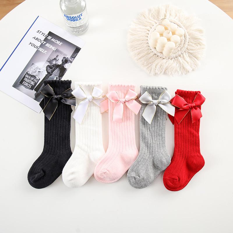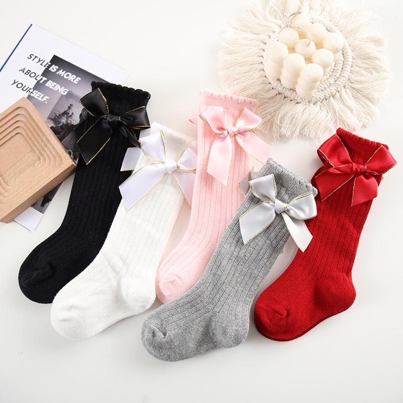 Calcetines de niña para primavera y otoño, calcetines de tubo medio con lazo bonito, calcetines para niños, calcetines de algodón de color liso, cómodos y combinables.