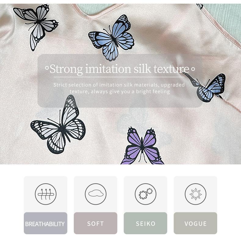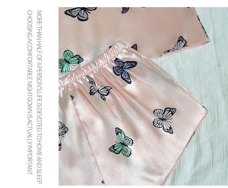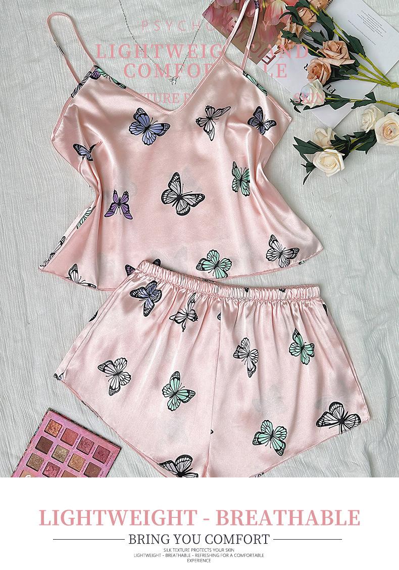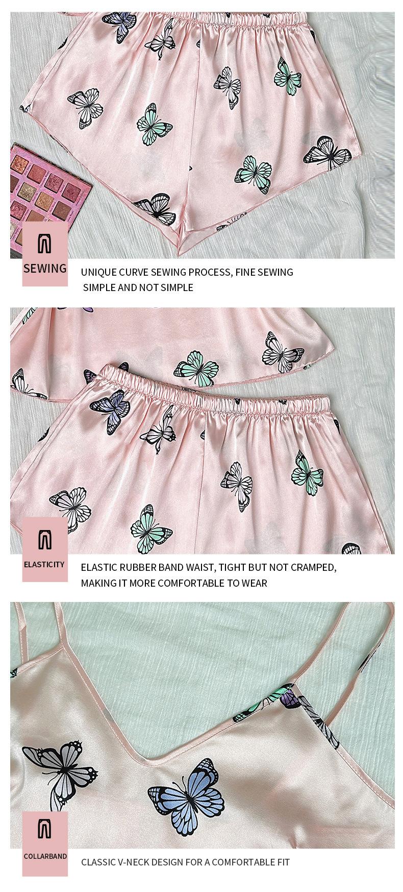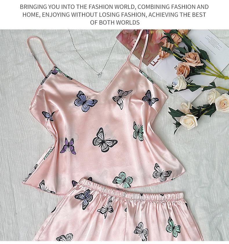 Pijama Nuevo de Mariposa de Dibujos Animados para Mujer Verano Sexy de Tirantes Shorts Dos Piezas Delgado Casual Transpirable Seda de Hielo Ropa para el Hogar