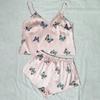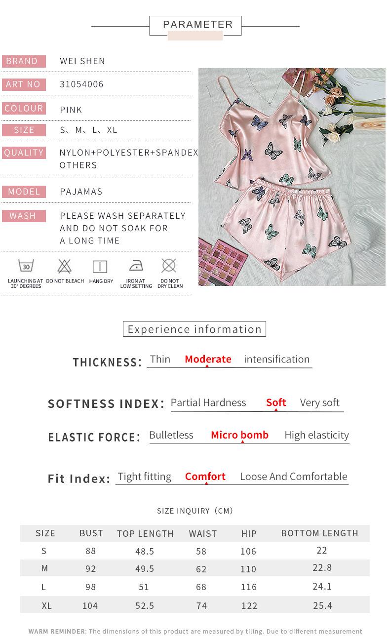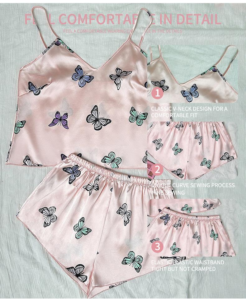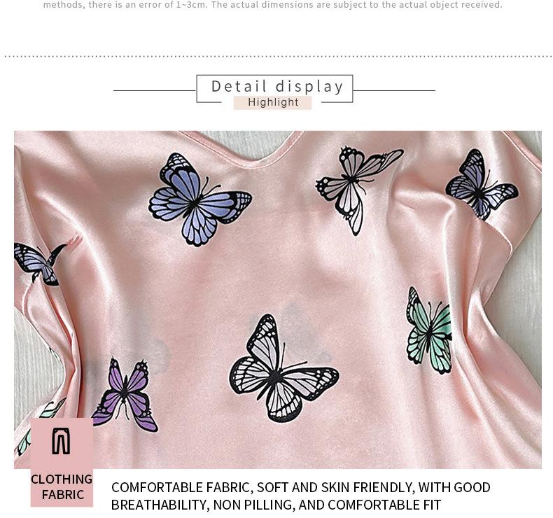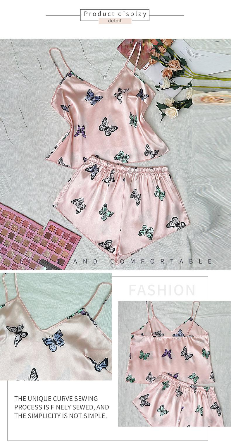 Pijama Nuevo de Mariposa de Dibujos Animados para Mujer Verano Sexy de Tirantes Shorts Dos Piezas Delgado Casual Transpirable Seda de Hielo Ropa para el Hogar