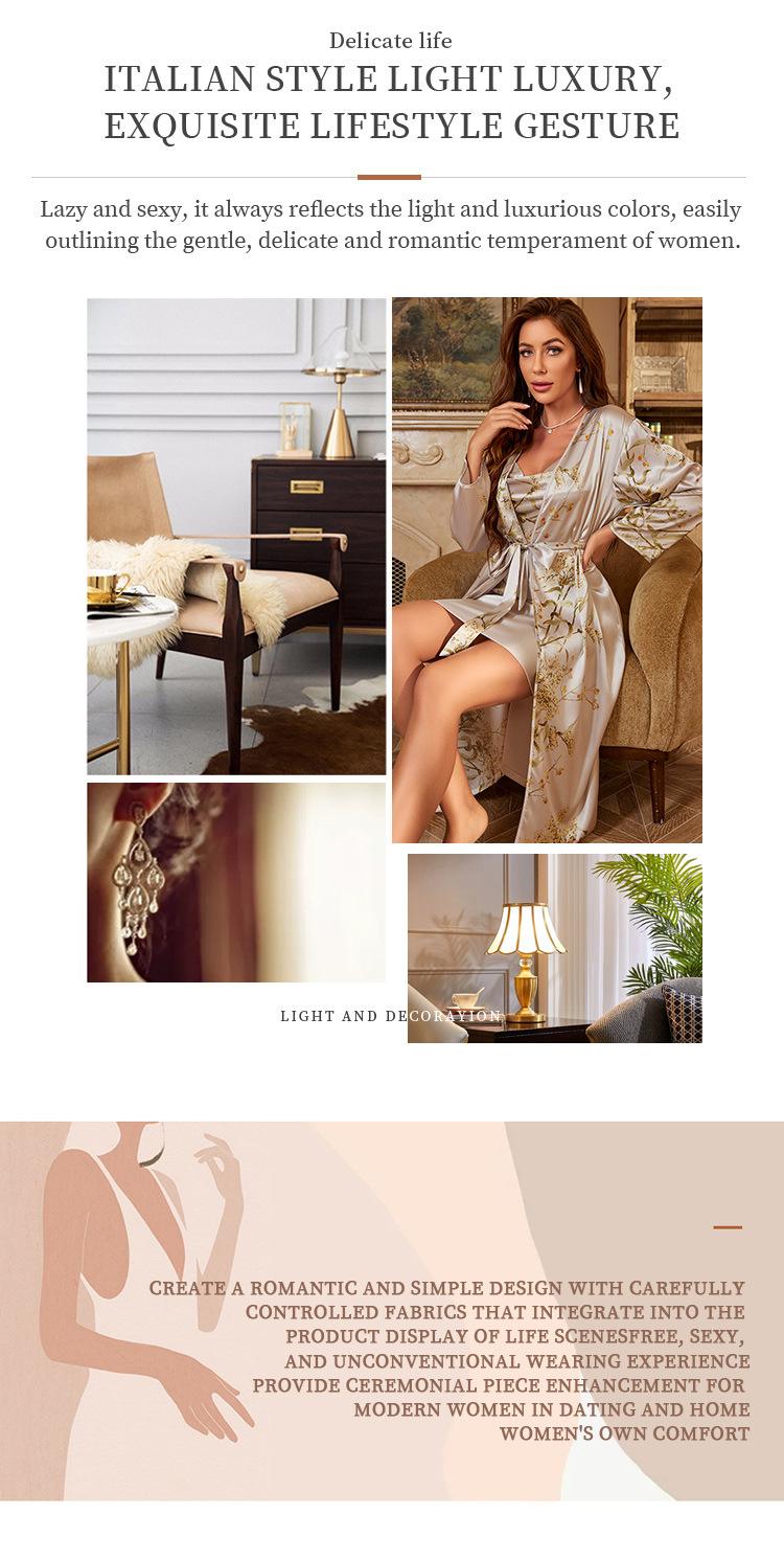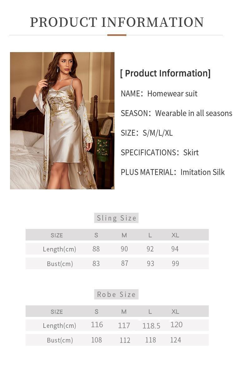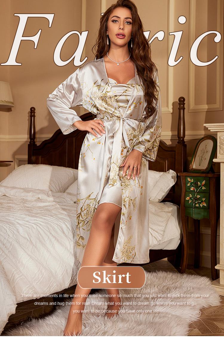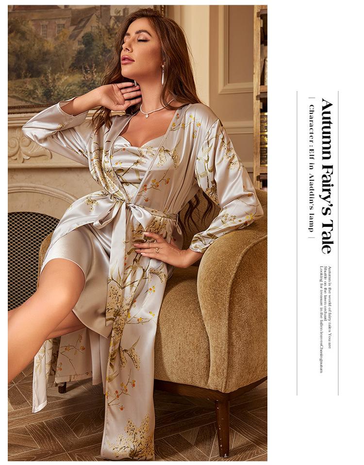 Denilyn Transfronterizo Camisón Largo con Tirantes Chaqueta para Mujer Tipo Seda Sexy Sencillo Pijama Estampado Ropa de Casa Traje