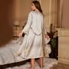 Pijama estampada de talla grande ropa de casa delgada para exterior conjunto de pijama largo bata con cordones camisón traje de dos piezas para mujer