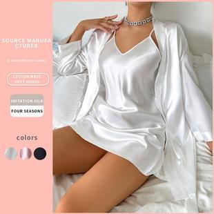 Nuevo camisón de seda de hielo para mujer, con sentido, se puede usar como ropa de casa, cárdigan de seda de imitación, falda con tirantes con encaje y bata exterior.