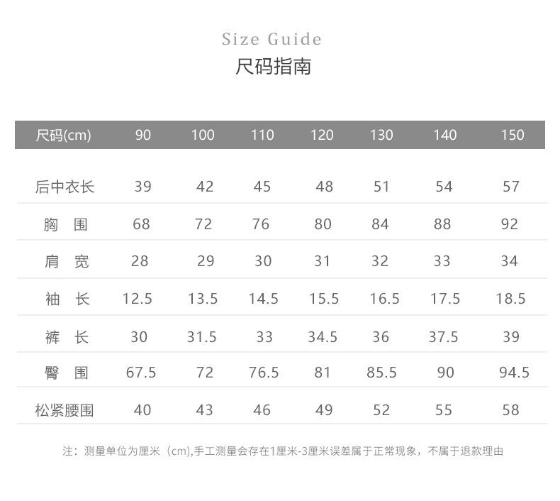 90cm, 100cm, 110cm, 120cm, 130cm, 140cm, 150cm