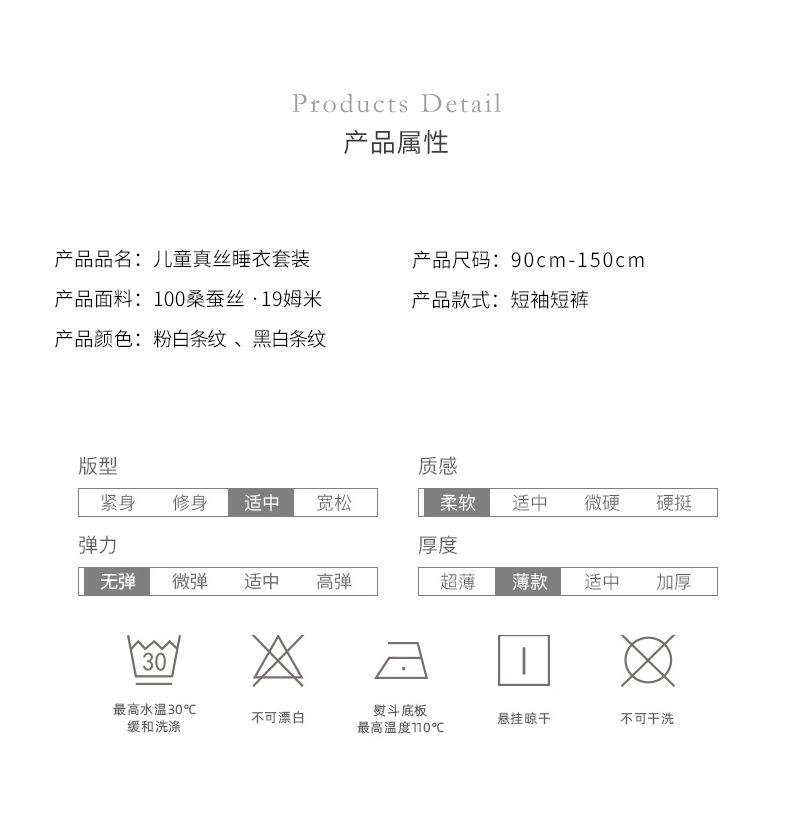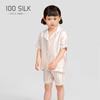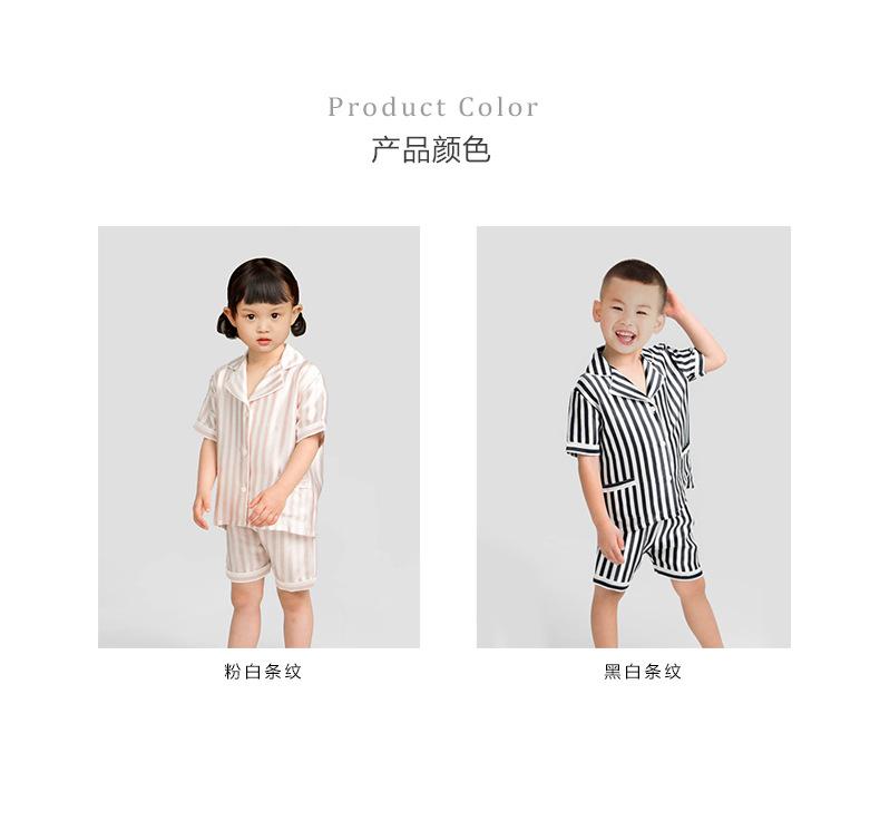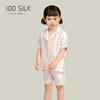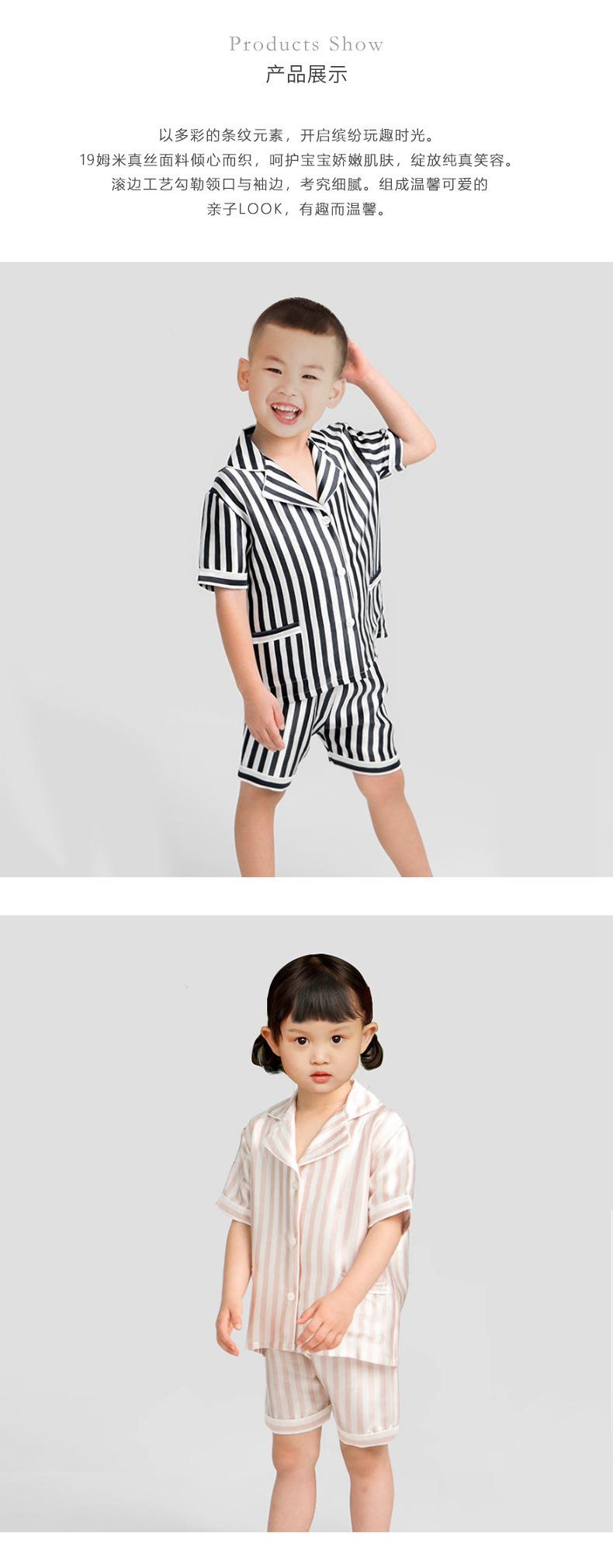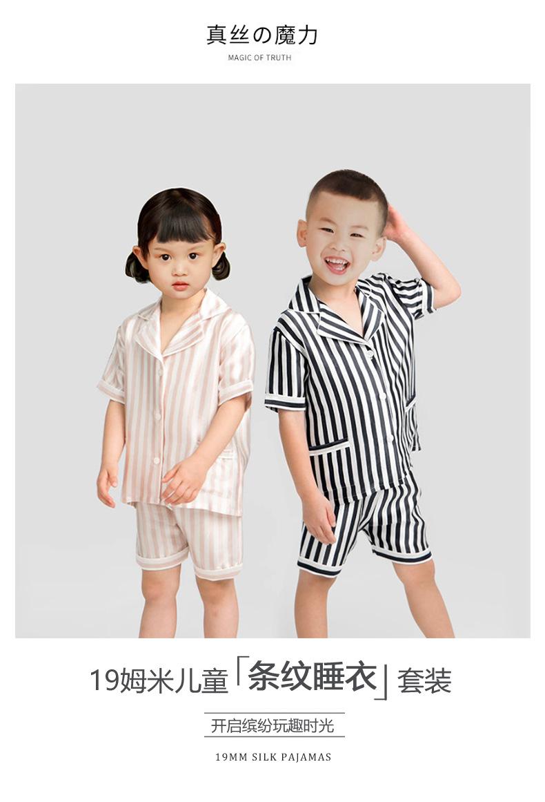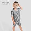 19 Mumi Pijama de Seda de Peso Pesado para Niños 100% Seda de Morera Niños y Niñas Rayado Manga Corta Pantalones Cortos Conjunto Ropa de Casa