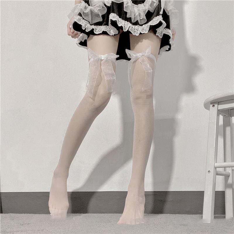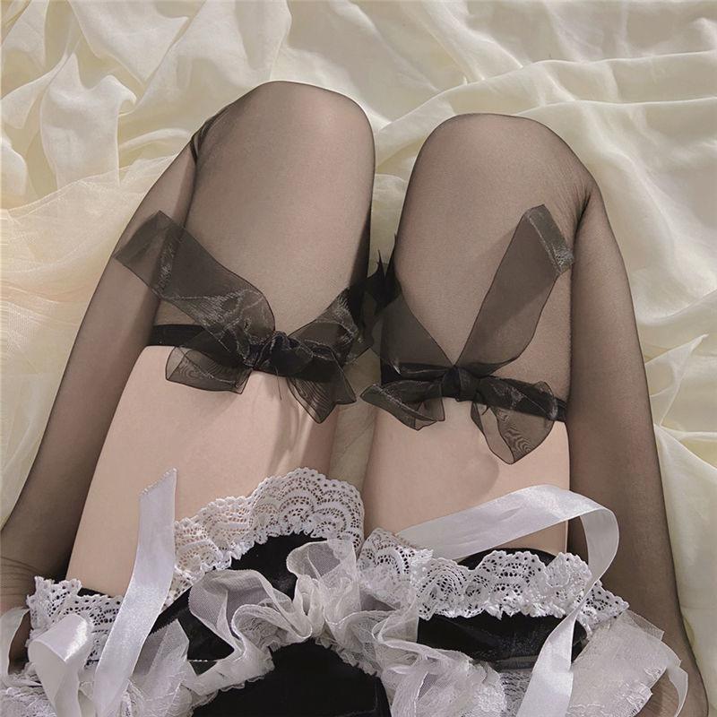 Medias de seda negras finas y sexys con lazo Pure Desire de Lori para mujer, calcetines largos finos de verano Jk, calcetines Lolita por encima de la rodilla.