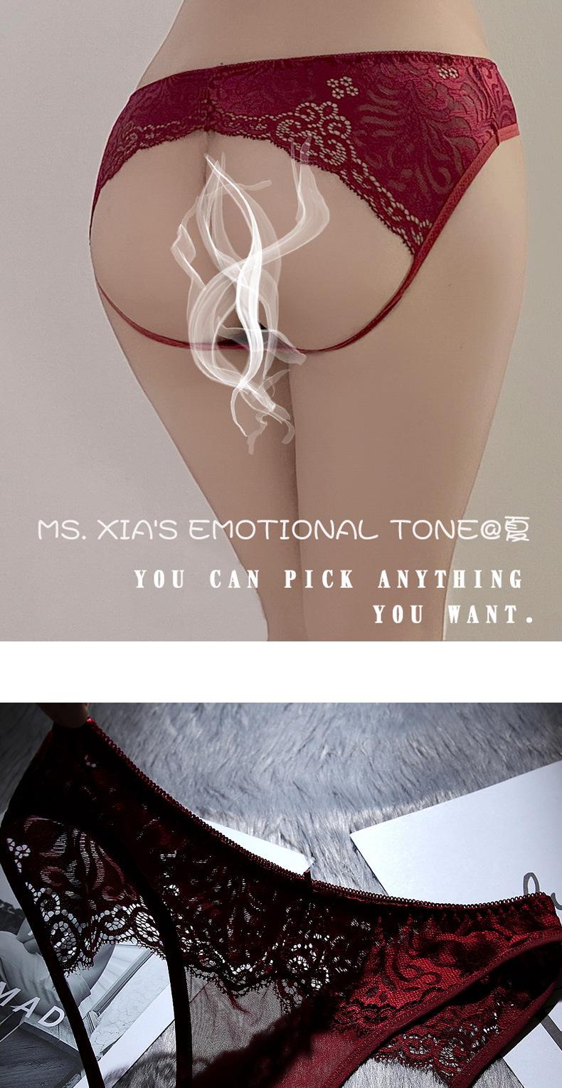 Ropa interior sexy de encaje para mujer, entrepierna abierta, perspectiva libre, sexy, hueco, transparente, abierto, Peach Hip 7597