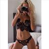 Conjunto de lencería sexy femenina europea y americana al por mayor con tirantes de lazo de encaje negro de tres puntos tentación