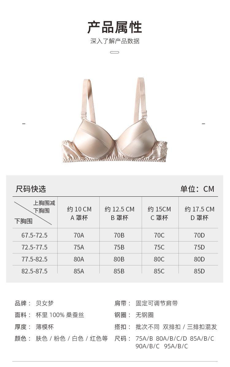 Beiwoman Dream Silk Bra Ropa Interior Sin Aros Verano Fino para Mujer Sujetador de Copa Completa de Seda de Morera de Alta Calidad