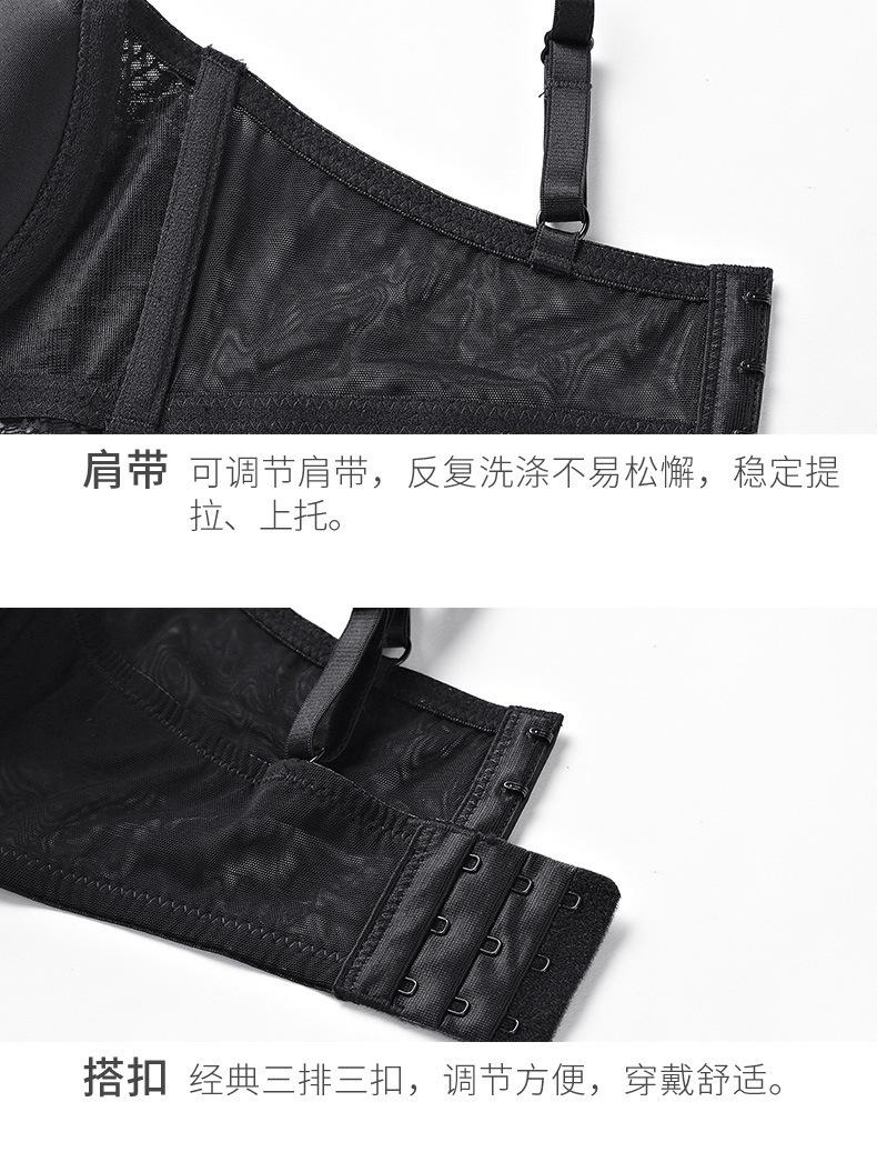 | Ropa interior de encaje sexy europea y americana, sujetador de aro de acero suave para mujer, conjunto de sujetador con ajuste fruncido grande y pecho pequeño |