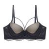 | Sujetador fruncido con tirantes de encaje sexy francés con bordado hueco para recoger los senos laterales y ajustar el conjunto de sujetador push-up superior |