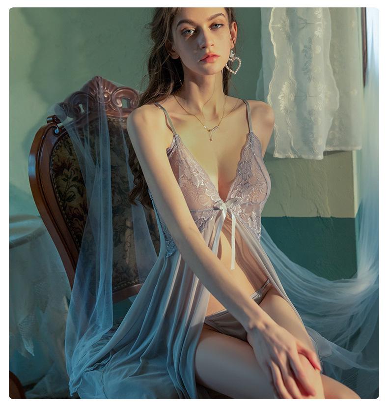 Compra Camisón de Lencería de Malla Transparente de Ajuste Abierto Camisola de Encaje Sexy Puro para Mujer Primavera y Otoño Ropa de Dormir Transparente al por mayor en Joom.pro
