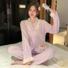 Pijamas de seda helada para mujer, primavera 2024, bonitos pantalones de manga larga con fresas pequeñas, traje de dos piezas, ropa holgada para el hogar.
