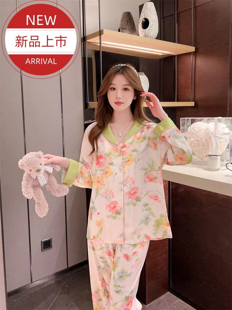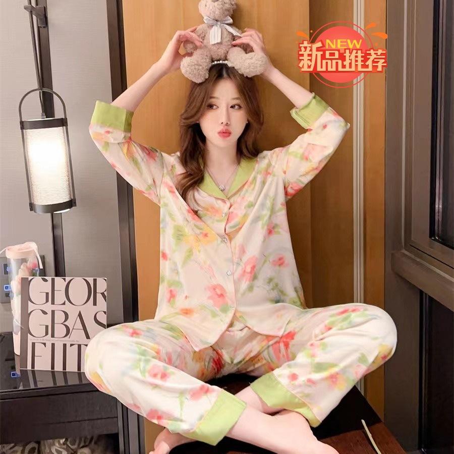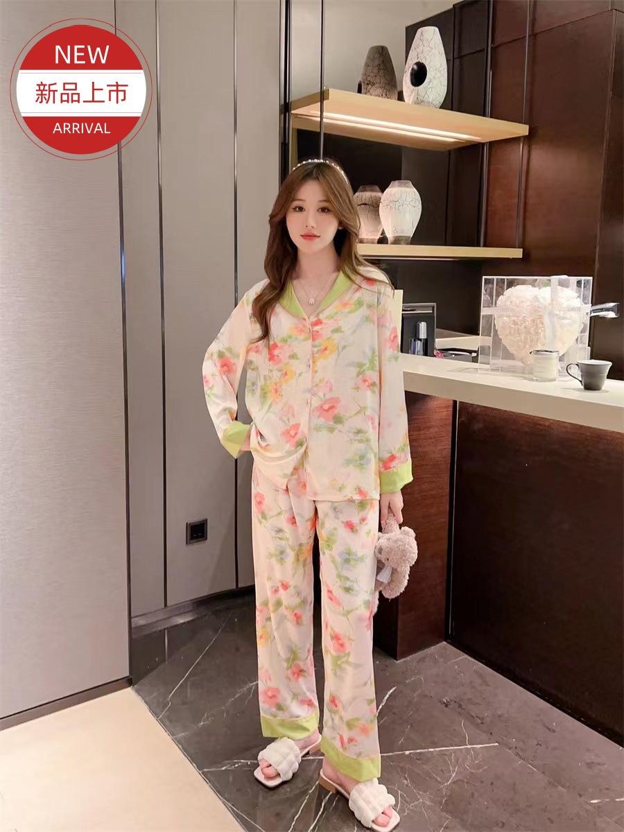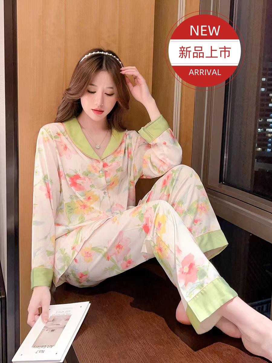 Pijamas de mujer de primavera y otoño nuevos de seda fina de manga larga de moda pastoral de alto sentido de las mujeres ropa de hogar fábrica al por mayor