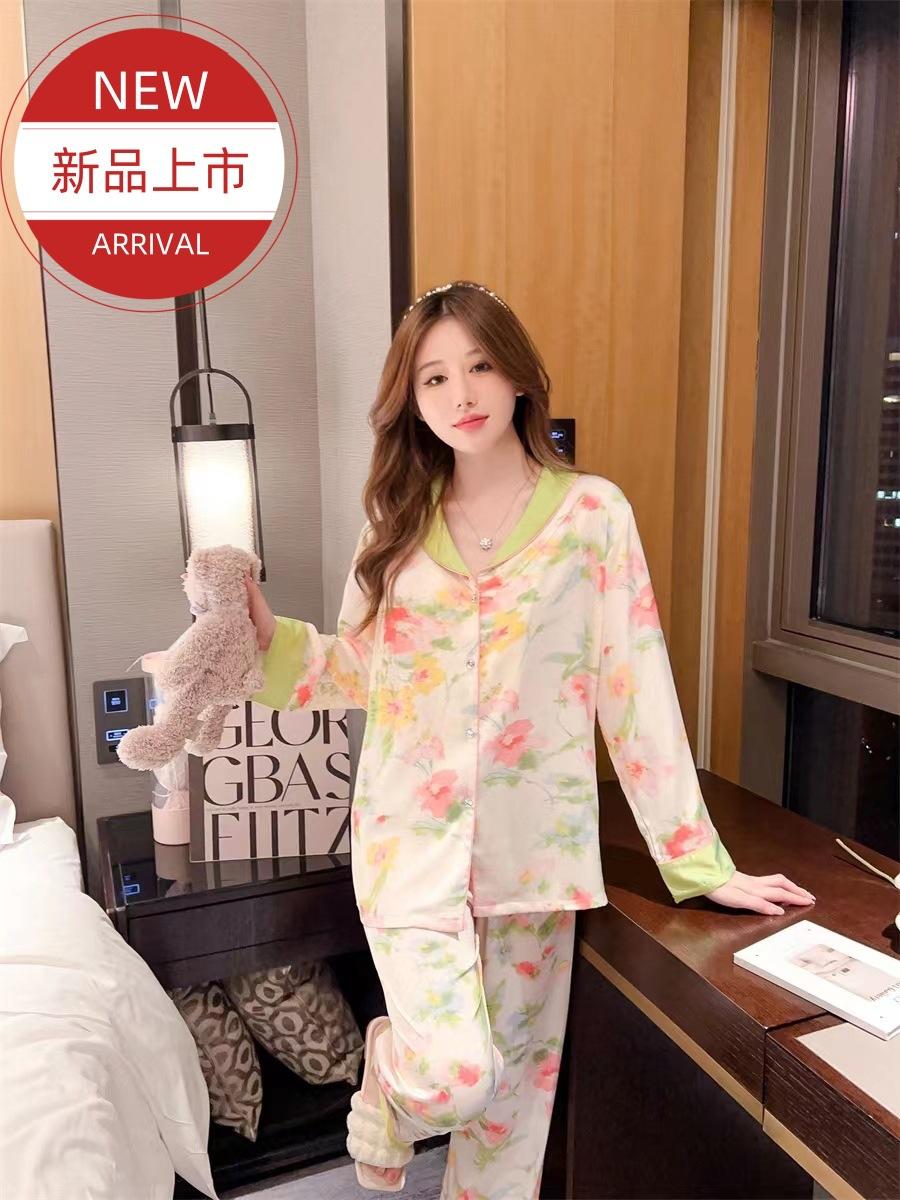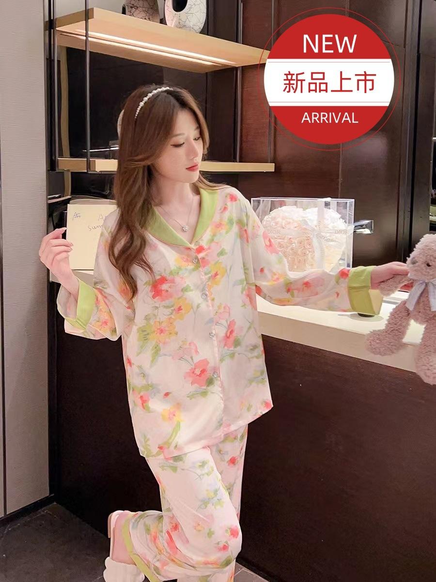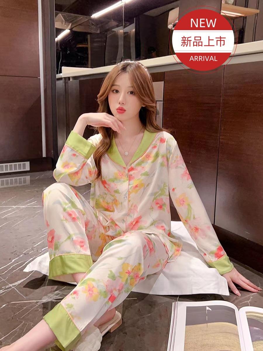 Pijamas de mujer de primavera y otoño nuevos de seda fina de manga larga de moda pastoral de alto sentido de las mujeres ropa de hogar fábrica al por mayor