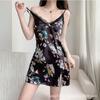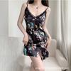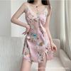 Pijama sexy con estampado floral francés, camisón de seda helada con tirantes finos de encaje y almohadilla para el pecho, ropa de casa de verano para mujer