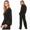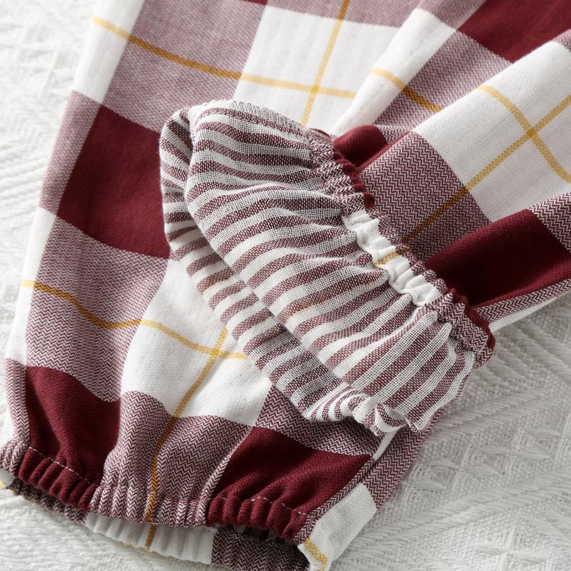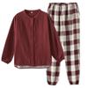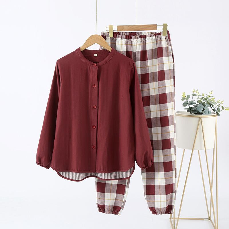 Pijama de una pieza de algodón de doble capa para mujer, ropa de casa sin estampado, primavera y otoño 2024, traje de cuello alto fino