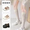 Calcetines de Pantorrilla de Encaje con Flores para Mujer, Calcetines hasta la Mitad de la Pierna, Calcetines por Encima de la Rodilla, Medias Dulces Blanco Leche con Falda, Tubo Largo Delgado