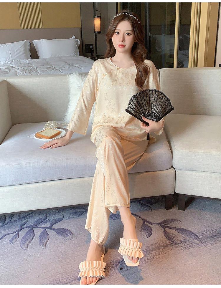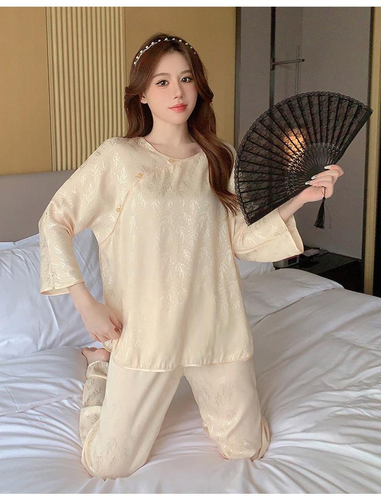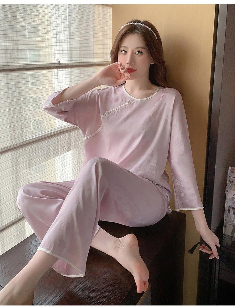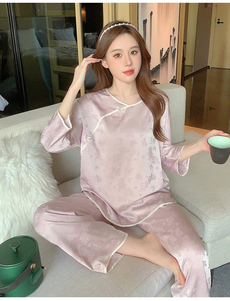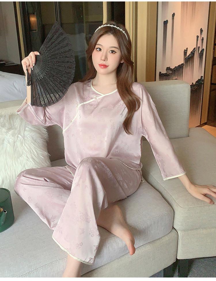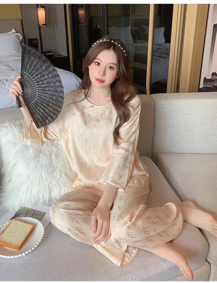 Pijamas de estilo chino para mujer, de seda de hielo, de verano, finos, de primavera y otoño, nuevo traje de seda de hielo, temperamento clásico, cuello redondo, ropa para el hogar
