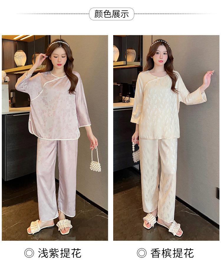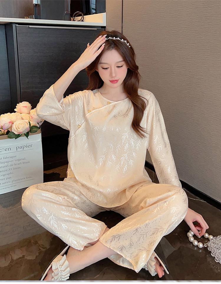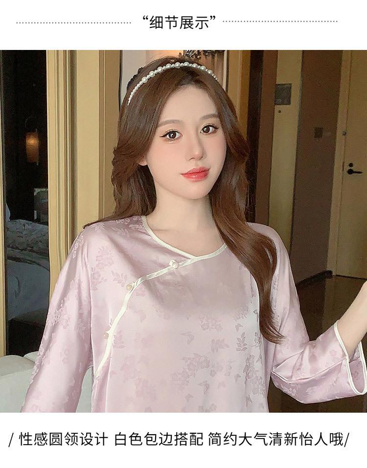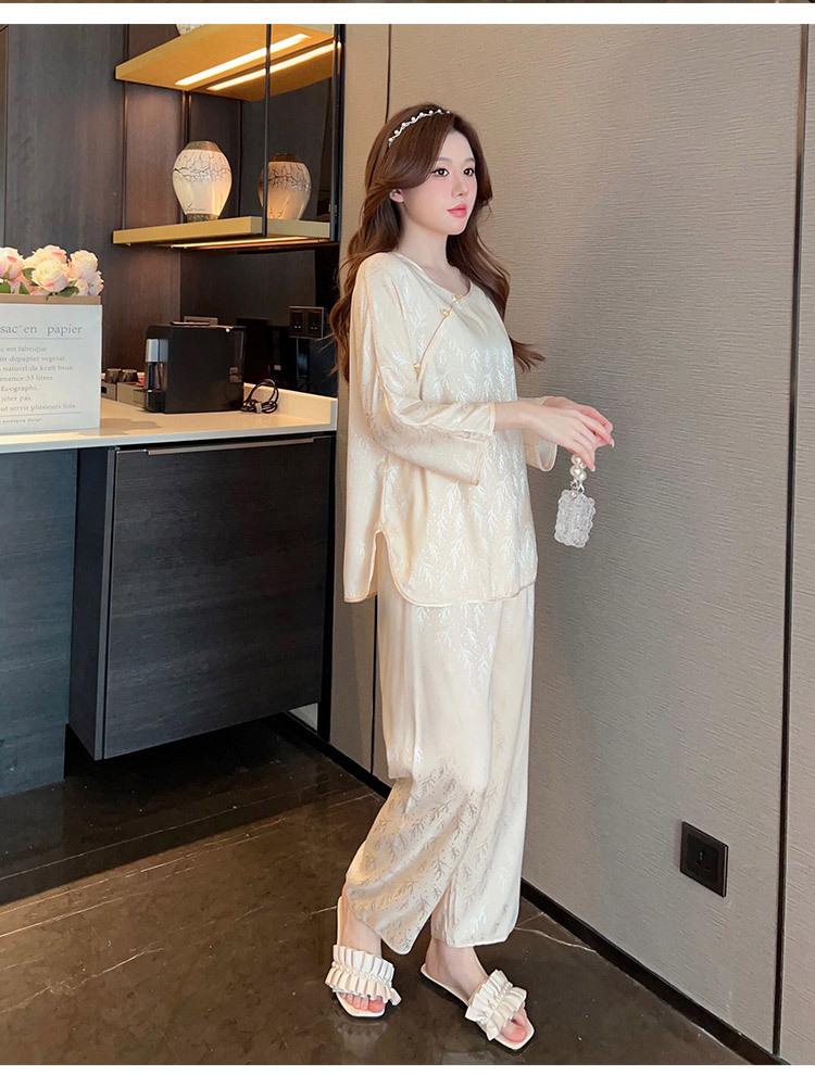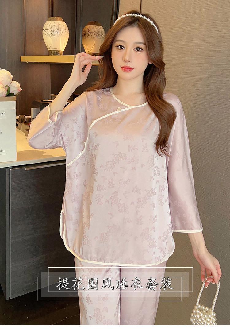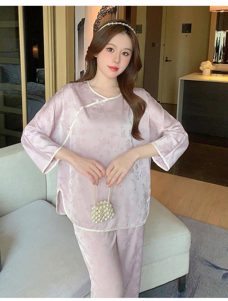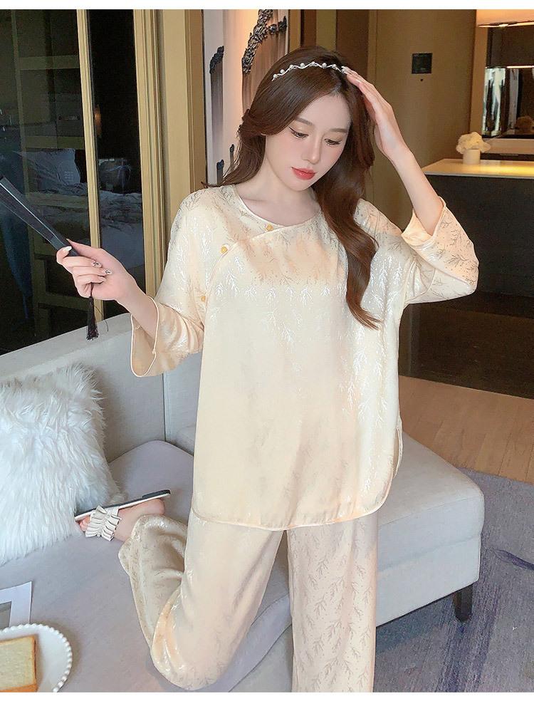 Pijamas de estilo chino para mujer, de seda de hielo, de verano, finos, de primavera y otoño, nuevo traje de seda de hielo, temperamento clásico, cuello redondo, ropa para el hogar