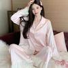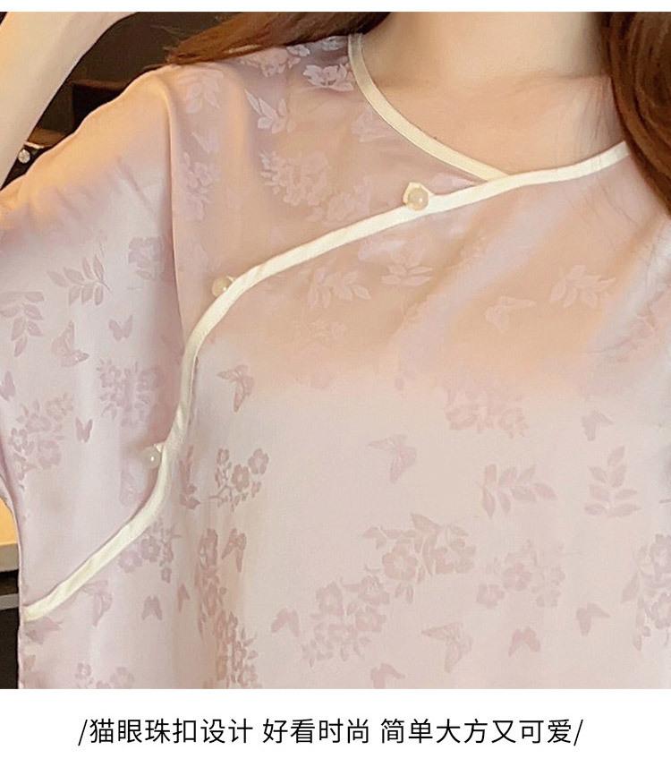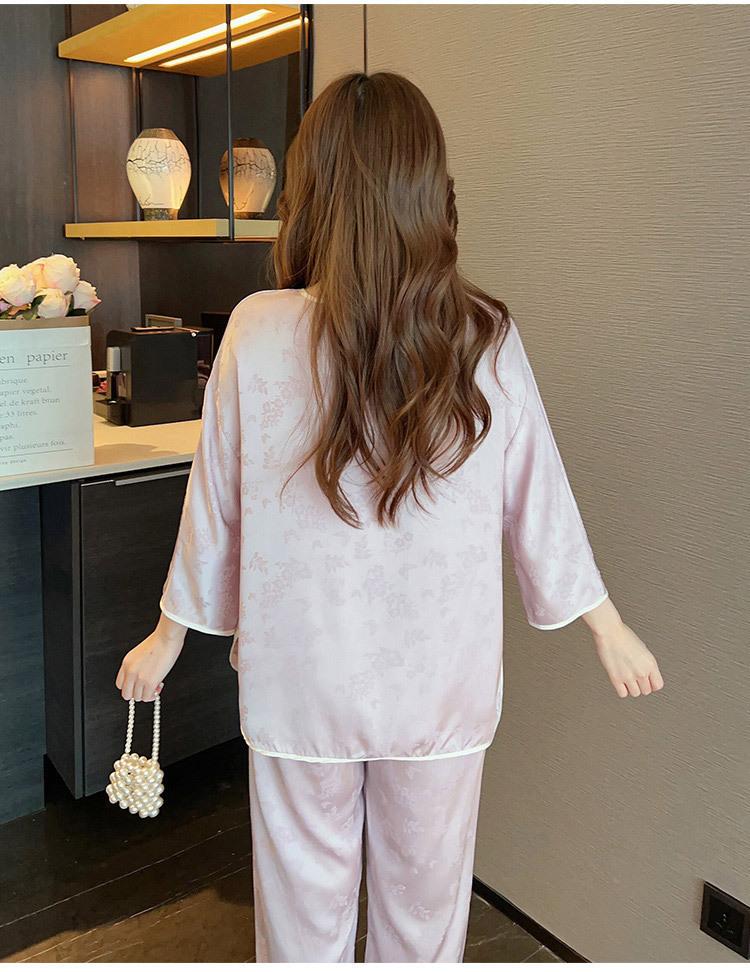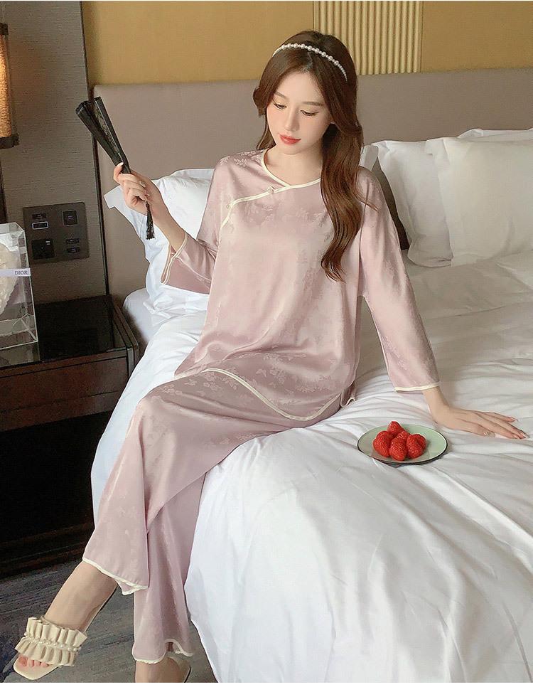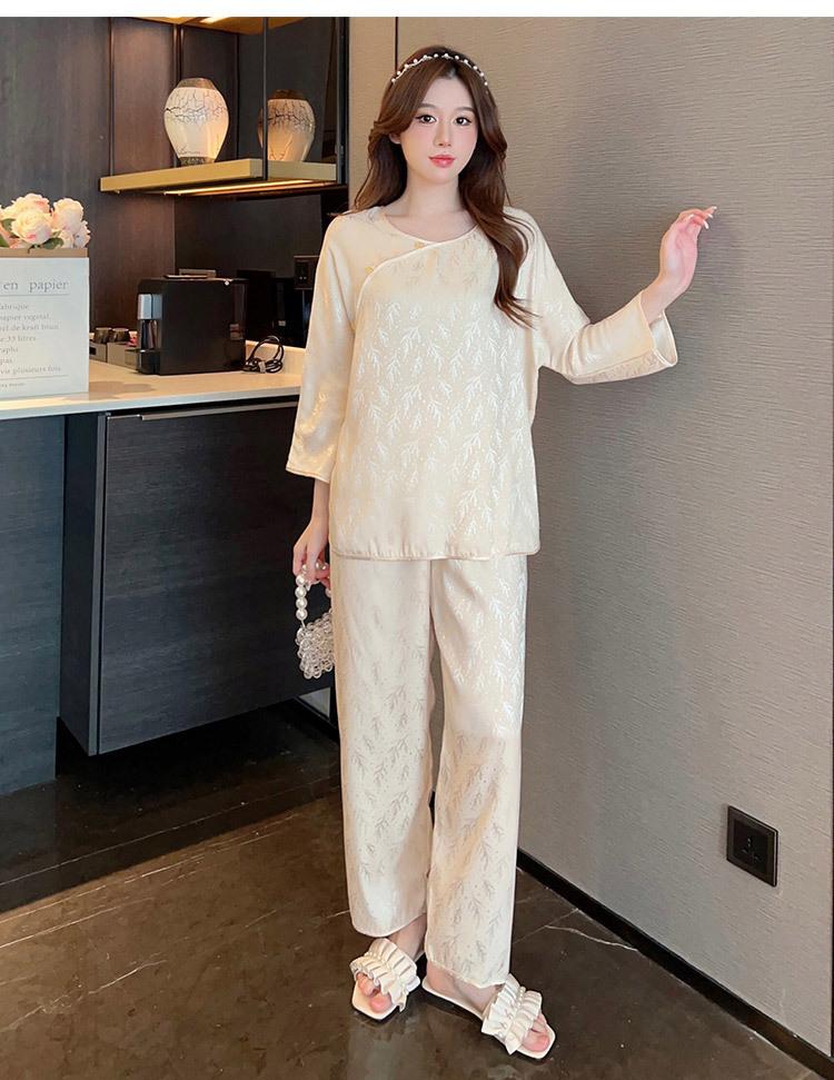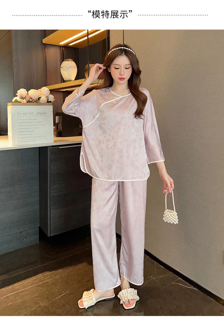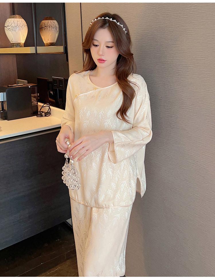 Pijamas de estilo chino para mujer, de seda de hielo, de verano, finos, de primavera y otoño, nuevo traje de seda de hielo, temperamento clásico, cuello redondo, ropa para el hogar