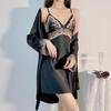 Pijamas de mujer primavera y otoño seda hielo fino sexy puro encaje caliente seda cabestrillo camisón largo verano