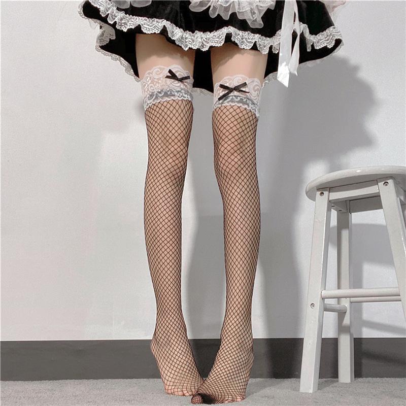 Medias sexys ultrafinas de color sólido, calcetines de sirvienta por encima de la rodilla, medias de encaje con lazo, calcetines blancos hasta el muslo, suaves para niña