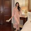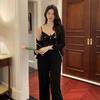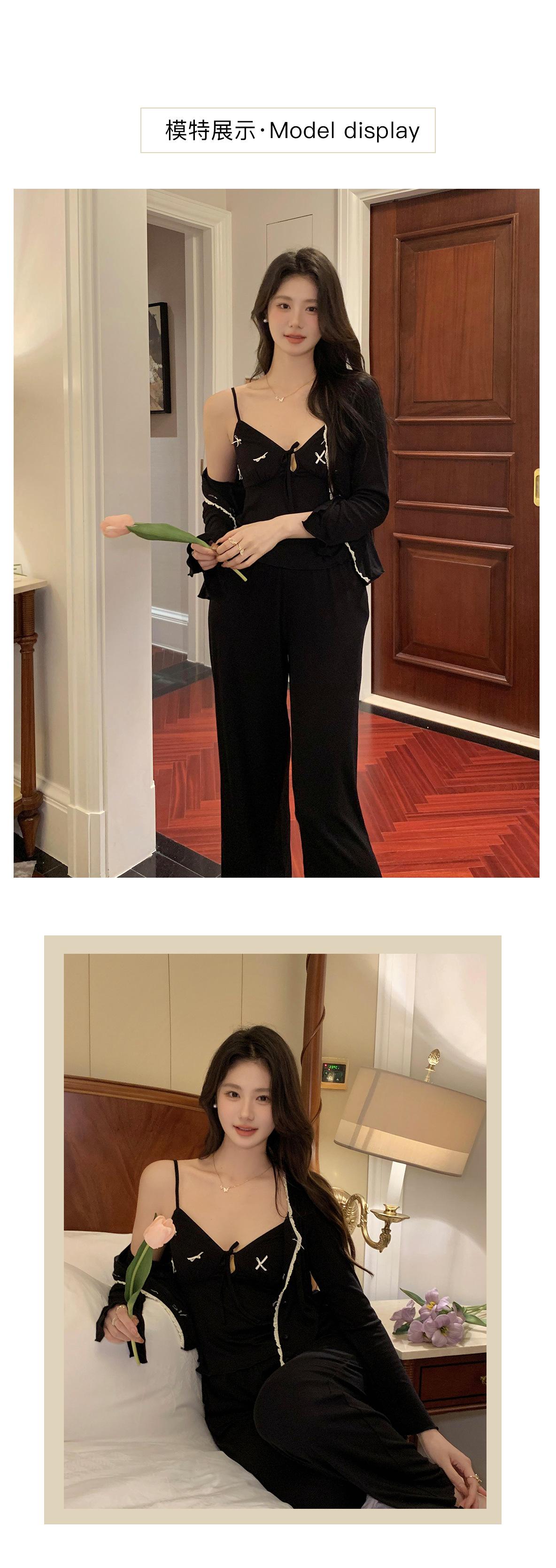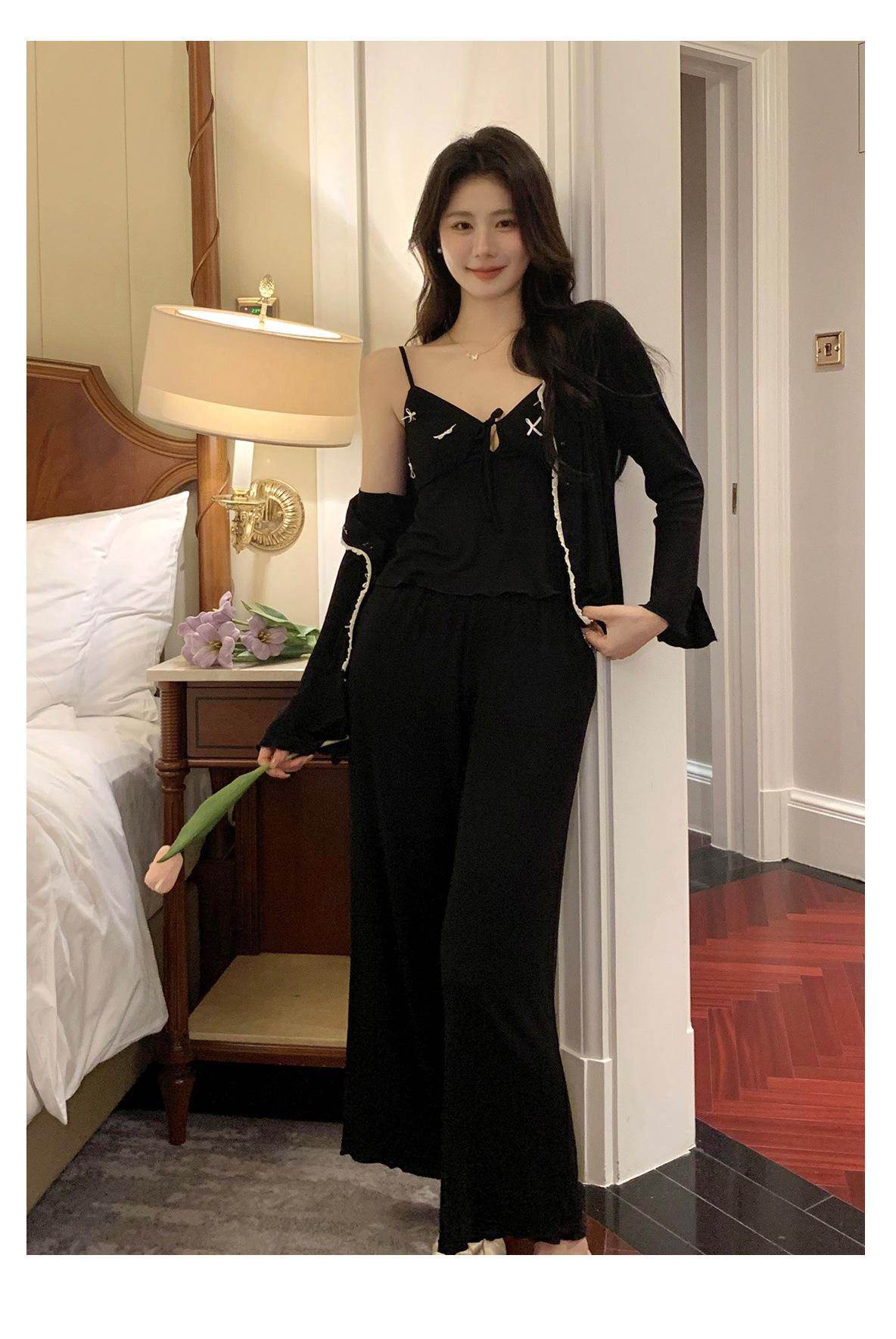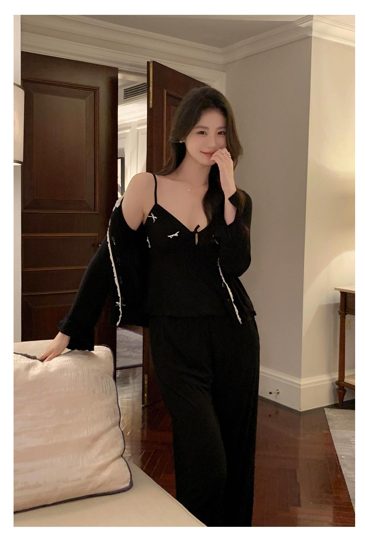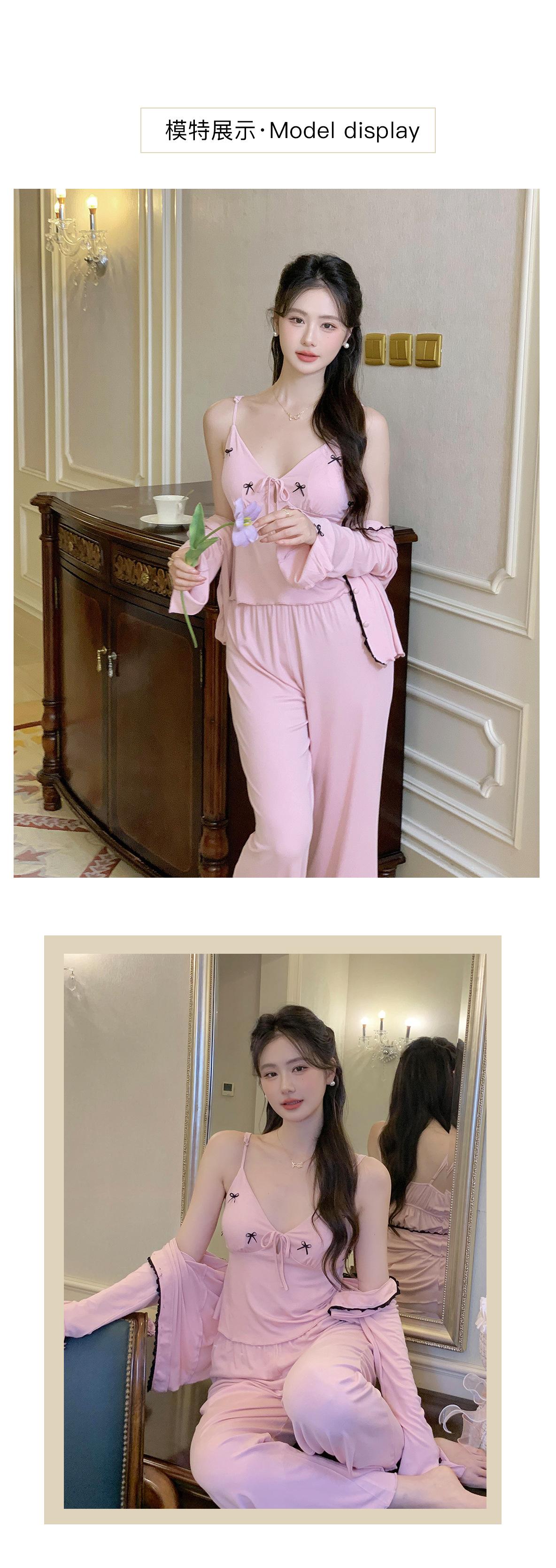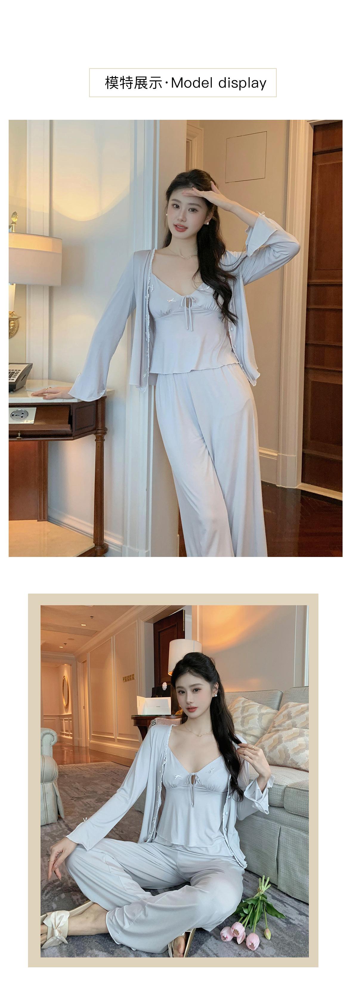 Pijamas de estilo francés para mujer, primavera y otoño, algodón, sexy, viento puro, cinturón, almohadilla para el pecho, traje de tres piezas para el hogar, para usar en el exterior