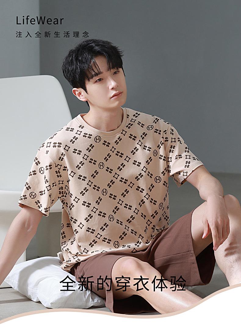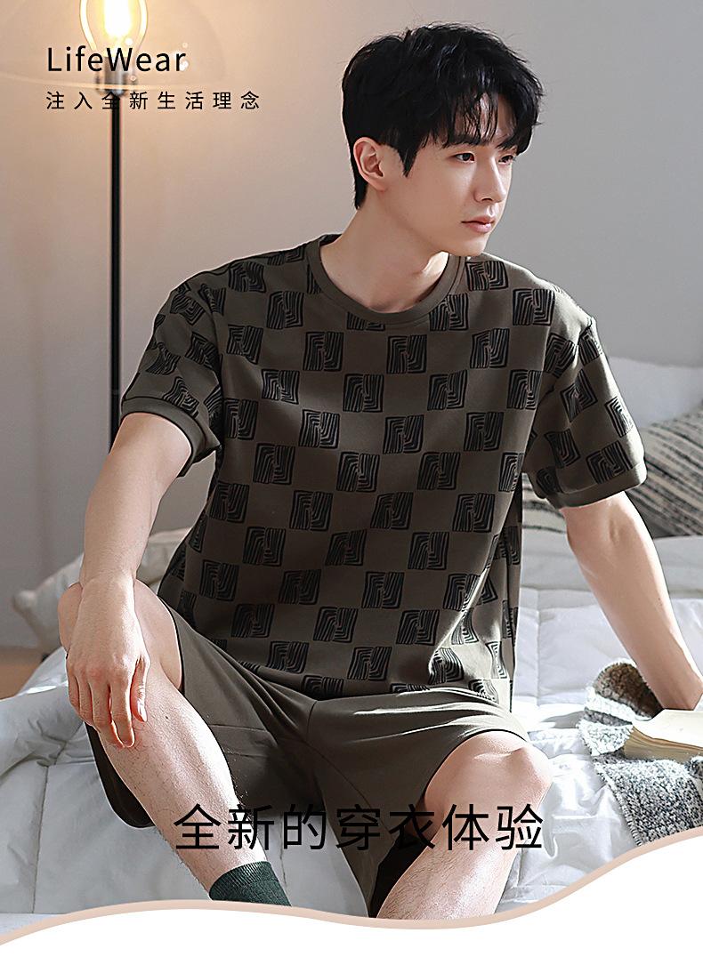 Pijamas de algodón para hombre, directos de fábrica, de verano, nuevos, en stock, sencillos, sueltos, de color sólido, de manga corta, para el hogar