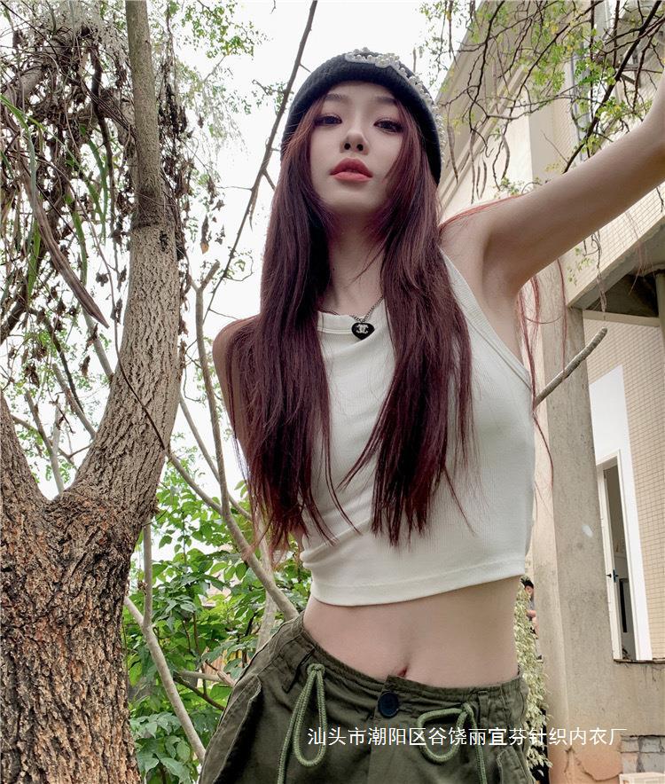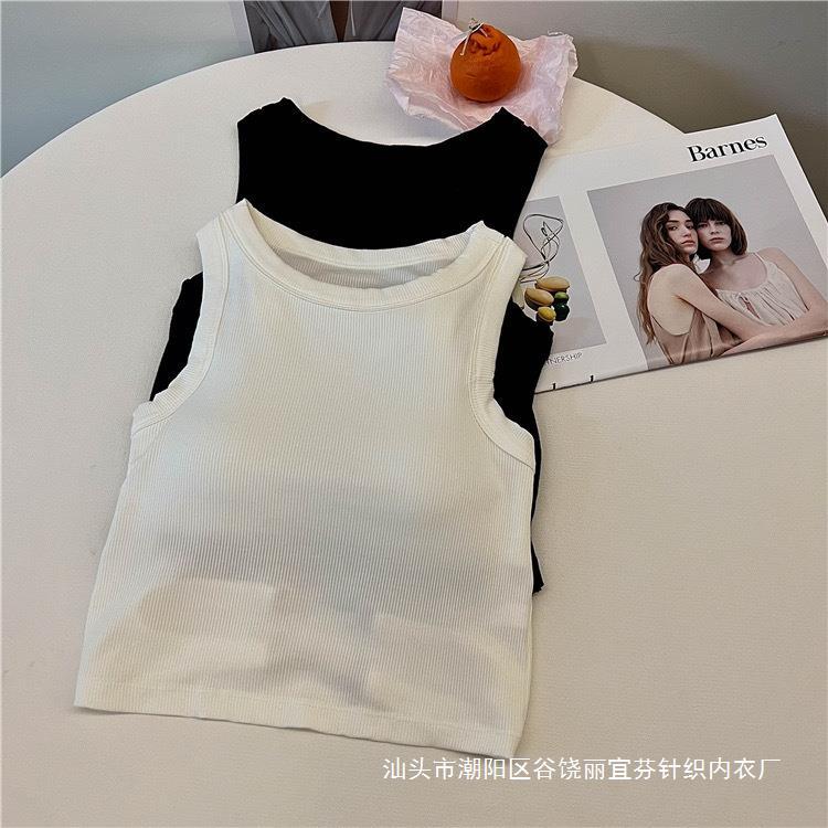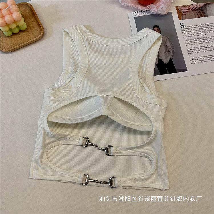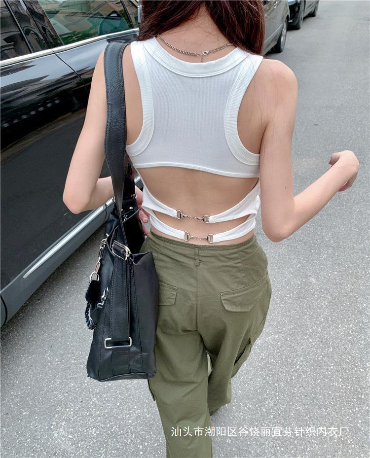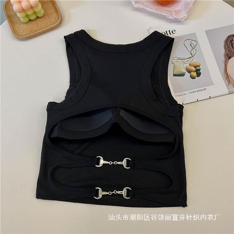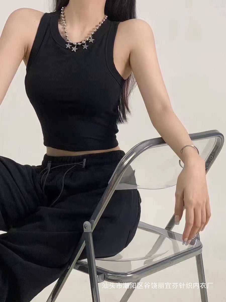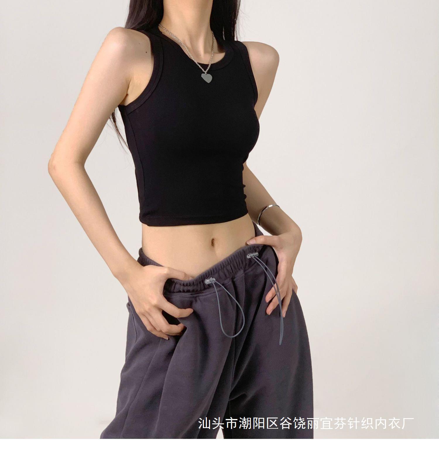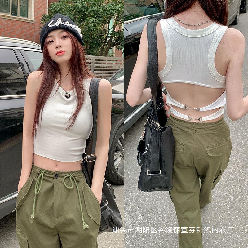 Chaleco corto ajustado estilo americano retro para mujer, prenda exterior de verano con almohadilla para el pecho, corte en forma de I, espalda hermosa, 2024