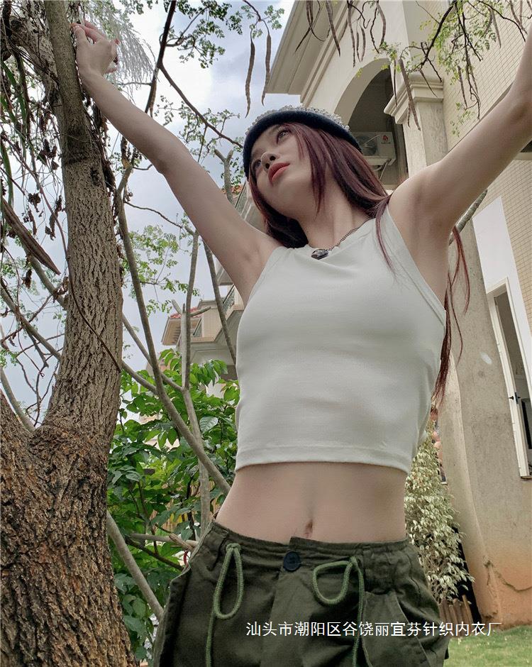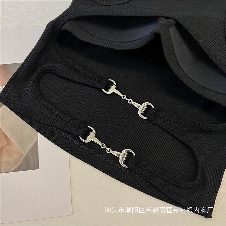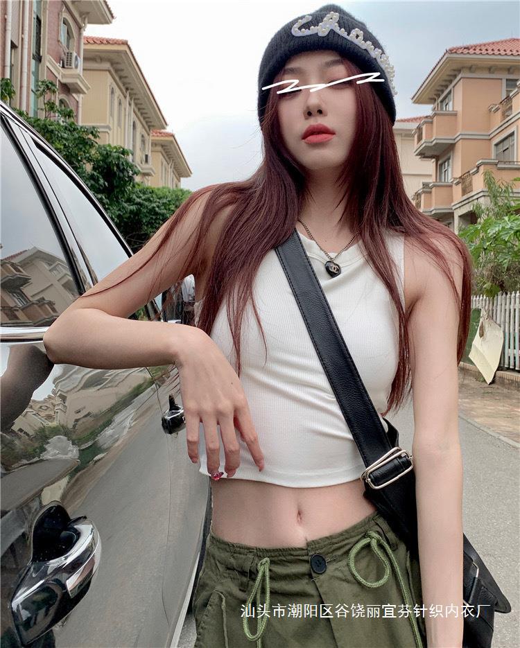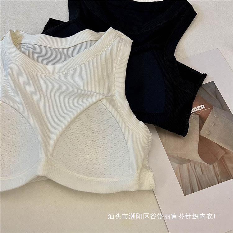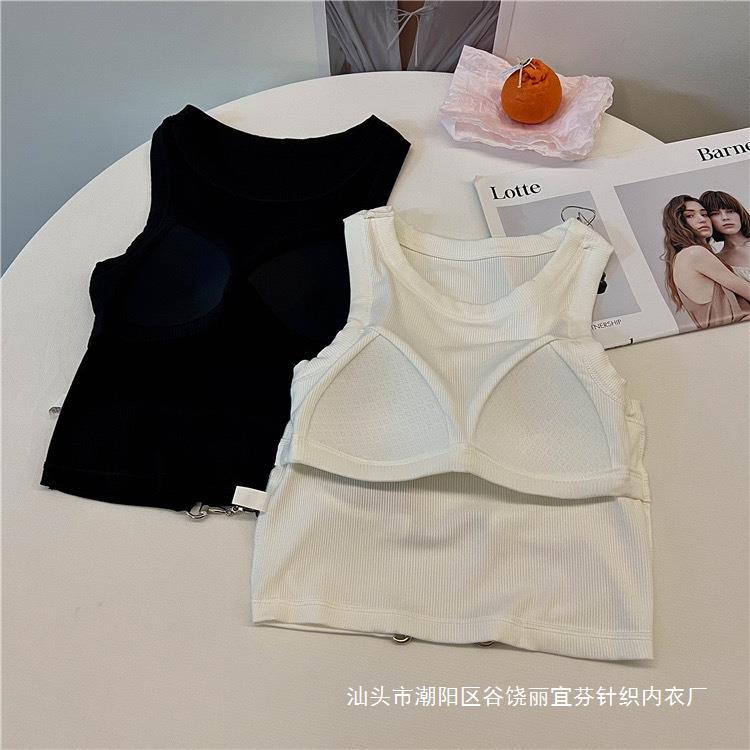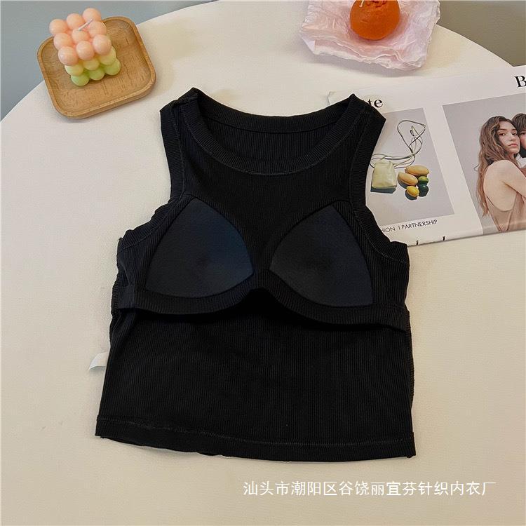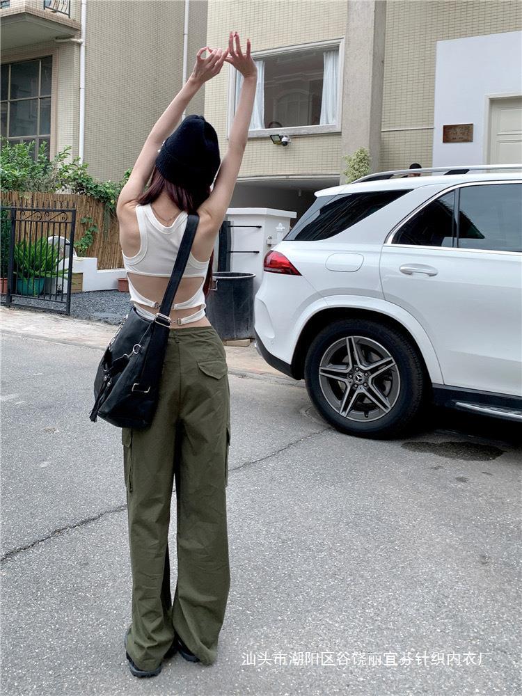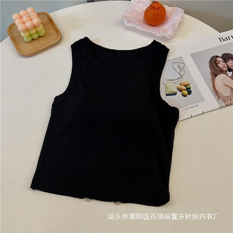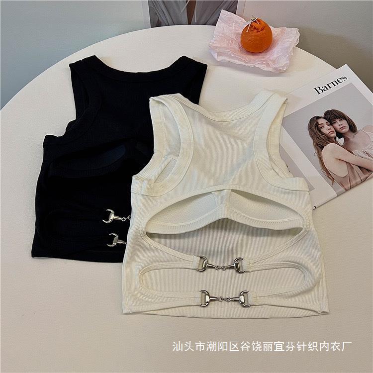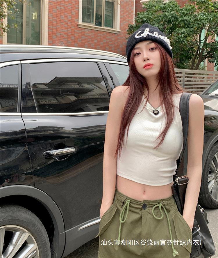Chaleco corto ajustado estilo americano retro para mujer, prenda exterior de verano con almohadilla para el pecho, corte en forma de I, espalda hermosa, 2024