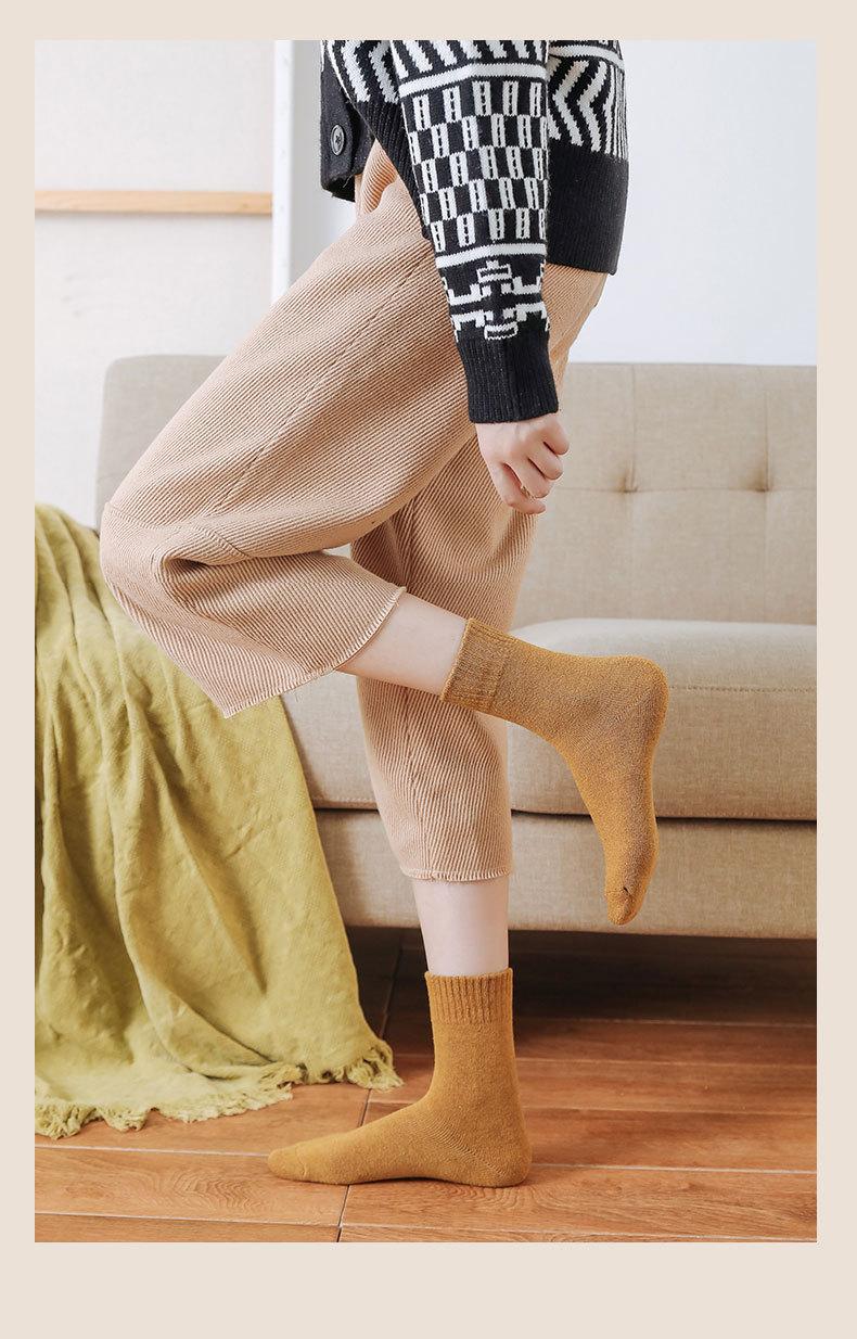 Calcetines de otoño e invierno para mujer, cálidos, de color liso, sueltos, de felpa, gruesos, con forro polar, para nieve y toalla.