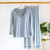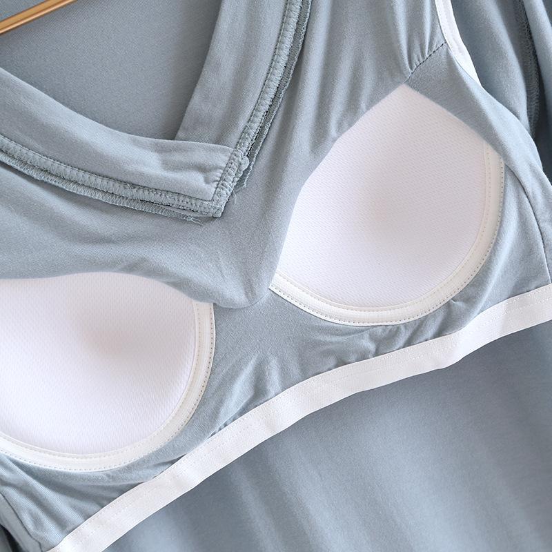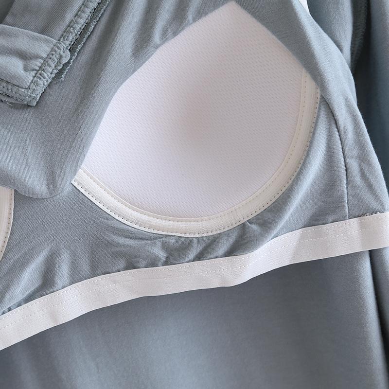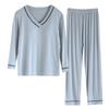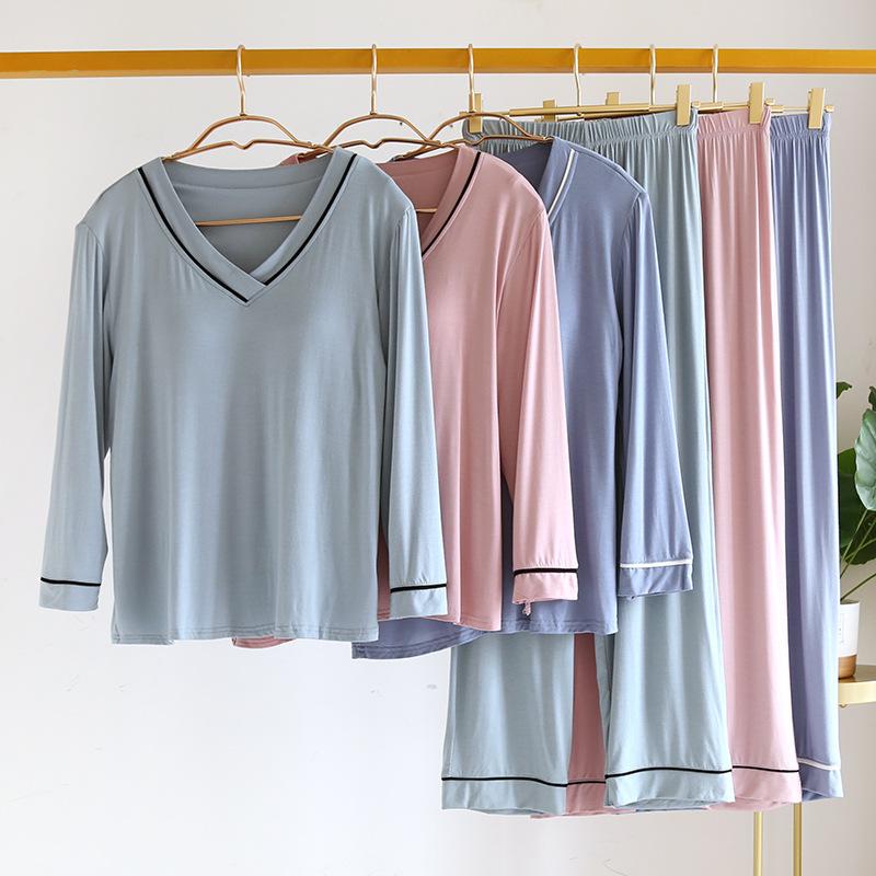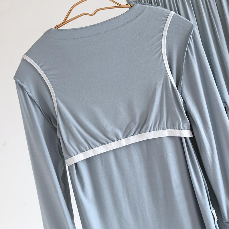 Pijama de mujer con almohadilla para el pecho, pantalones de primavera y verano de manga larga, finos, sueltos, de talla grande, ropa de casa, se puede usar al aire libre, traje informal