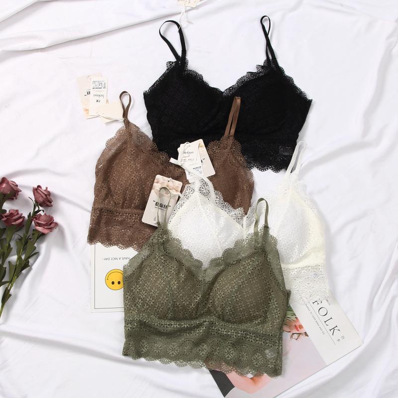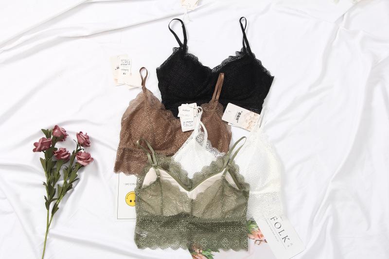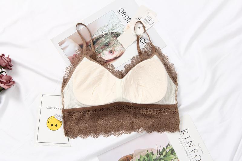 Encaje Europeo Primavera y Verano Tirante Fino Tirante de Belleza Mantenimiento Envoltura Pecho Sin Anillo de Acero Sling Chaleco Corto Ropa Interior Top de Tubo 2059