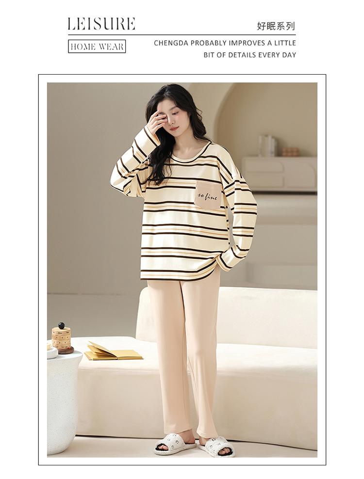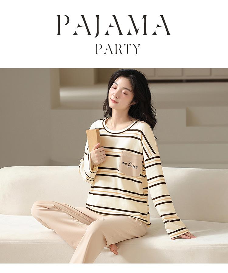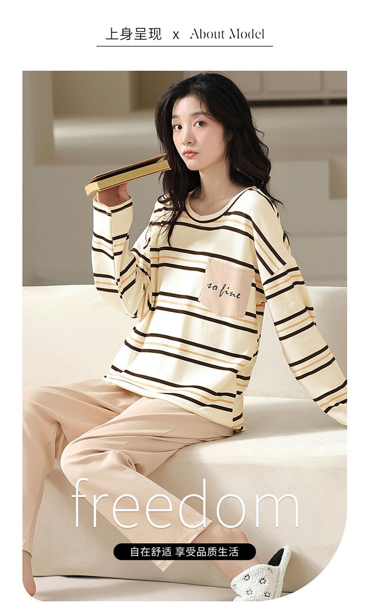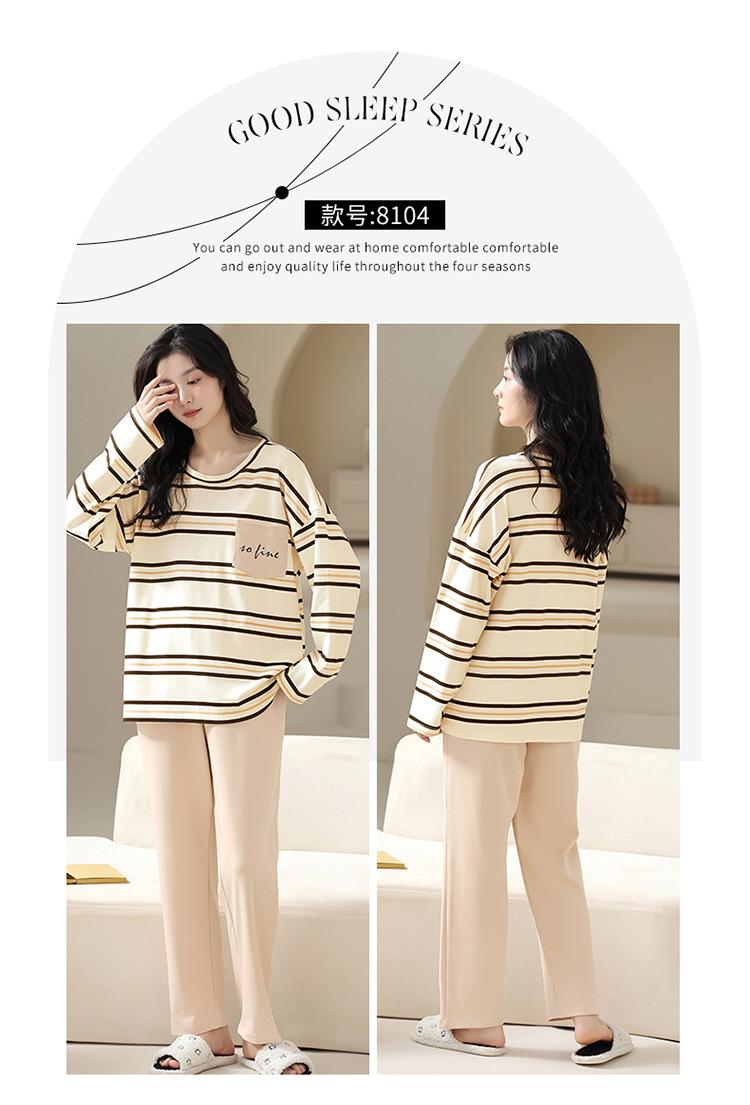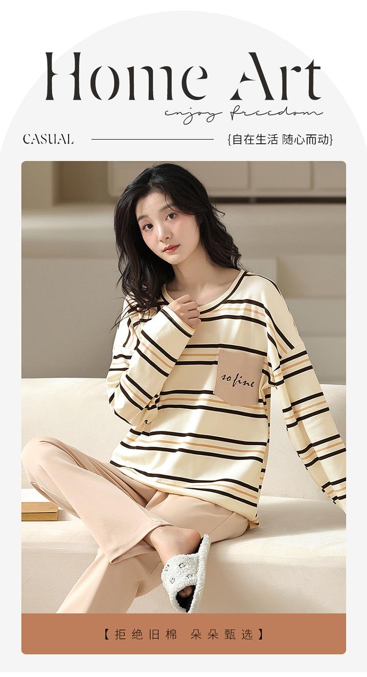 Pijama de algodón de manga larga para mujer de tienda física, nuevo de primavera y otoño, jersey de cuello redondo que se puede usar fuera, traje de ropa para el hogar