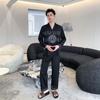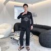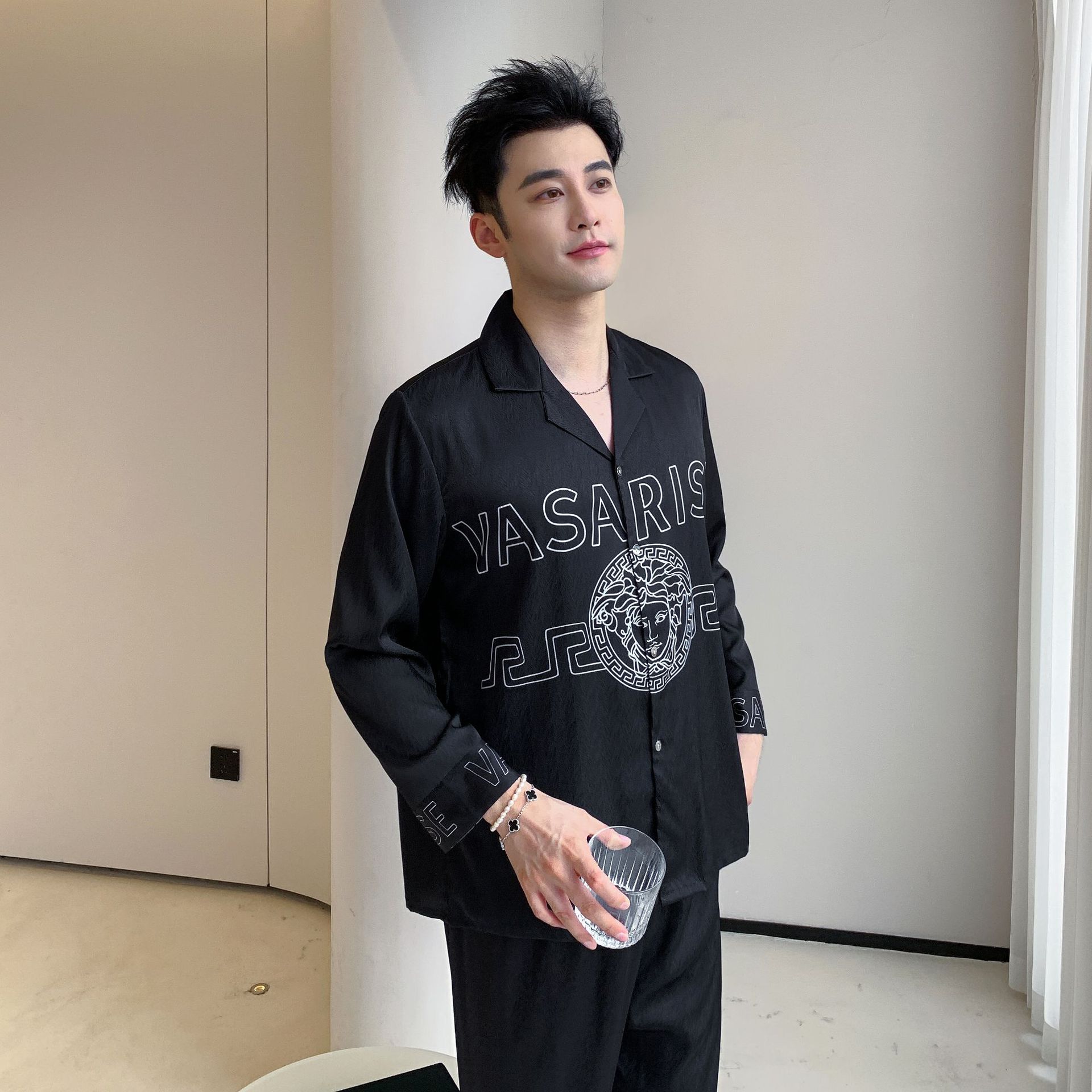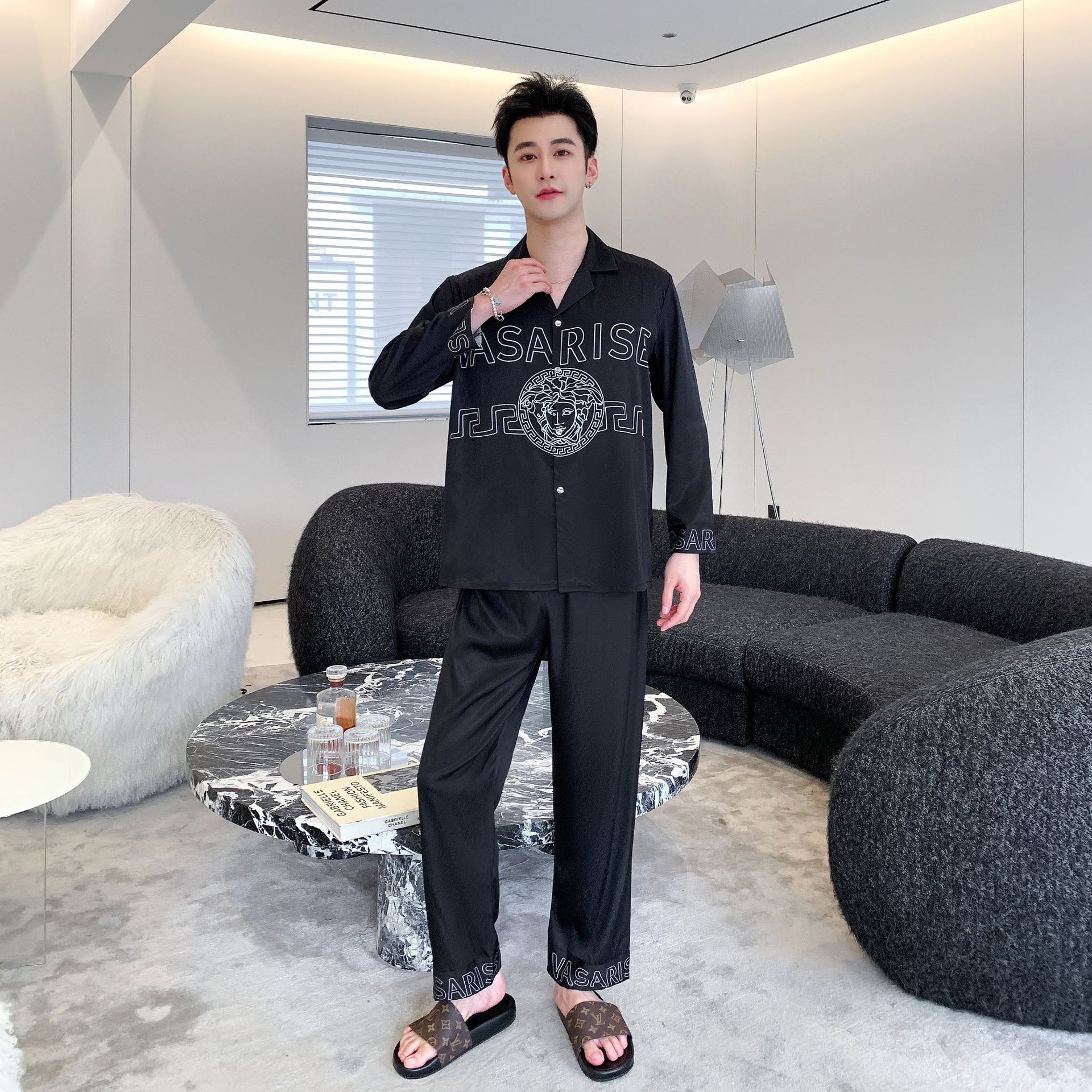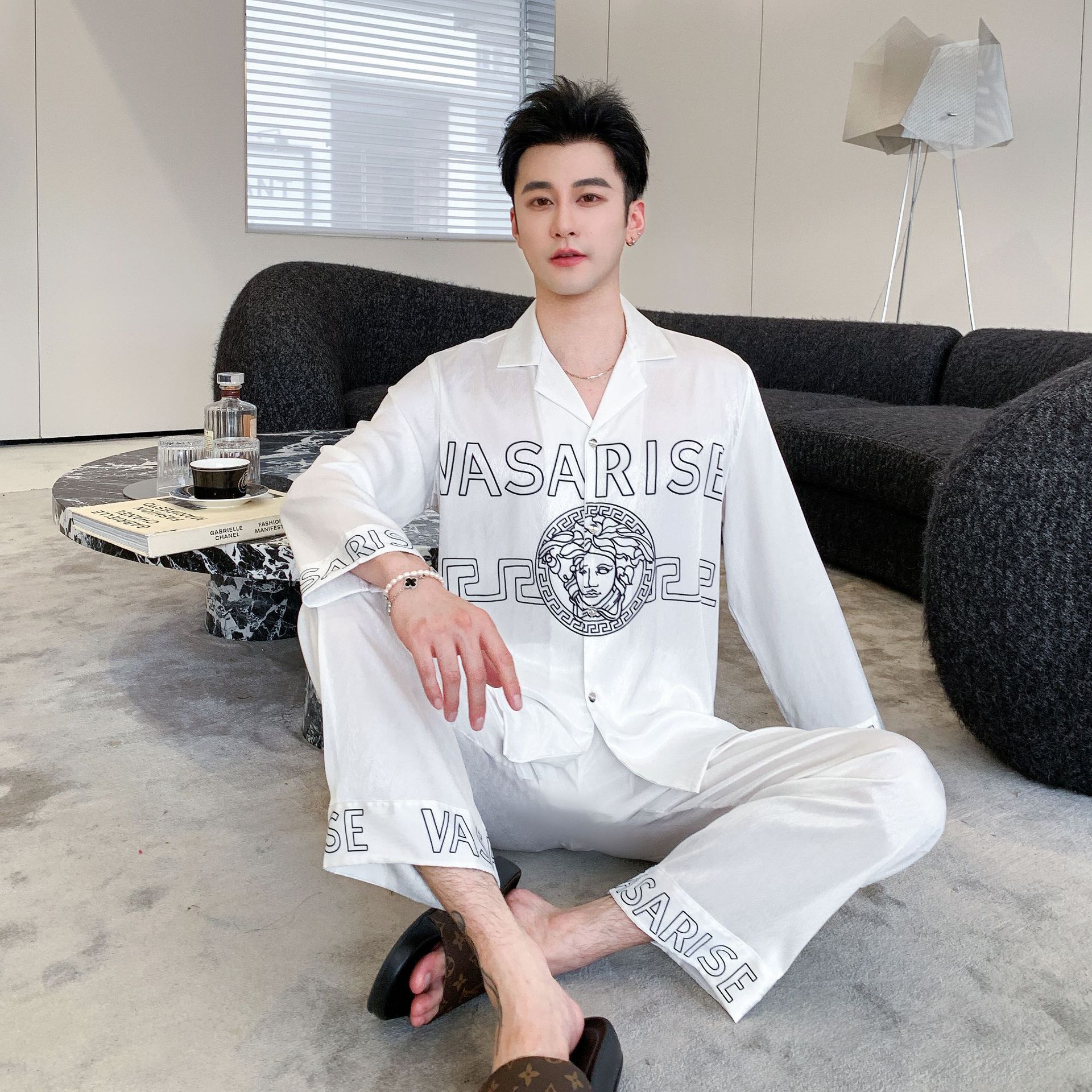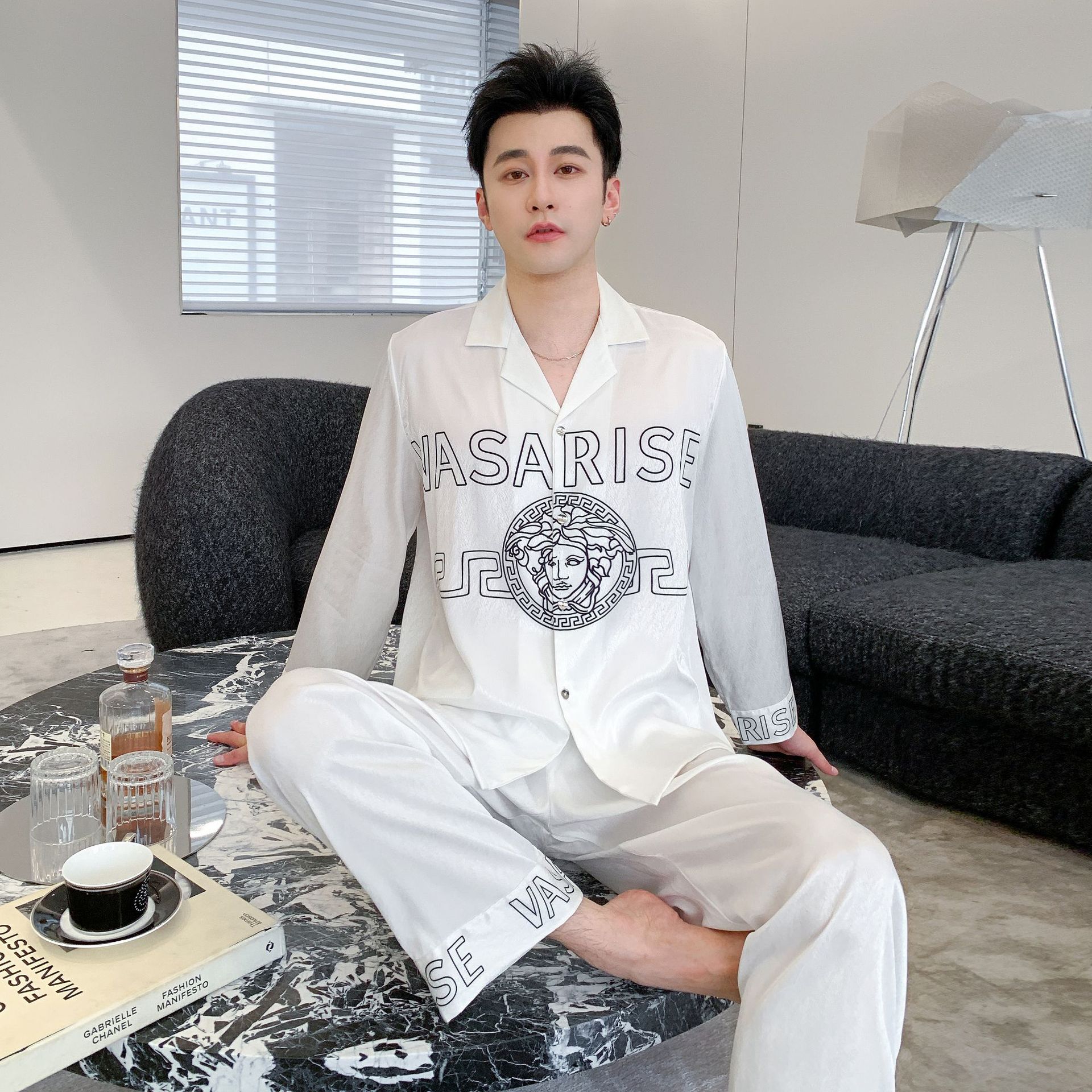 Pijama para hombre nuevo traje de manga larga de seda de hielo para hombre estilo rojo en línea de alta calidad ropa de casa famosa europea y americana holgada para hombre