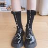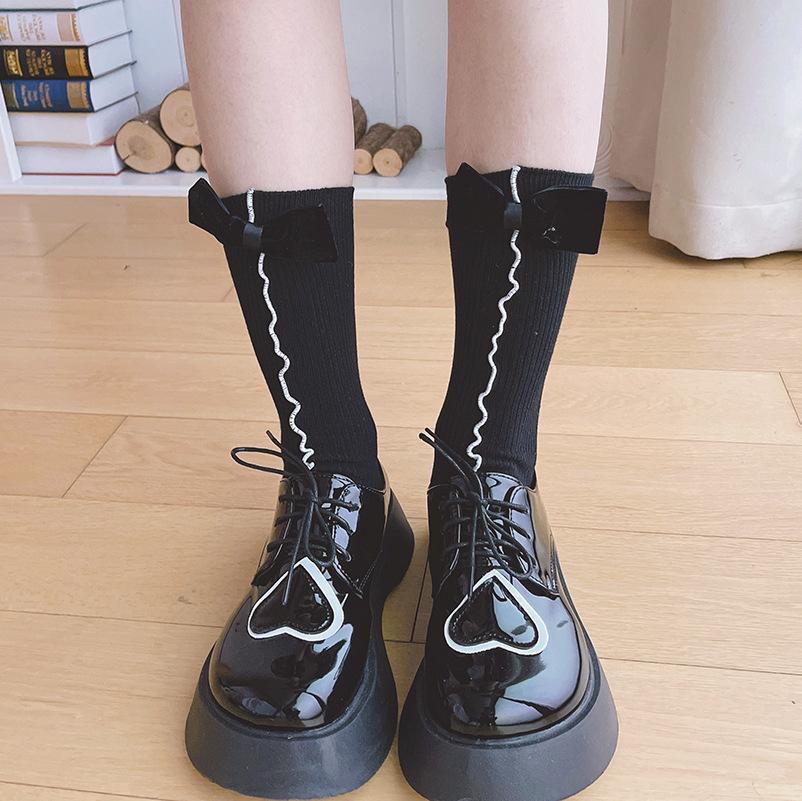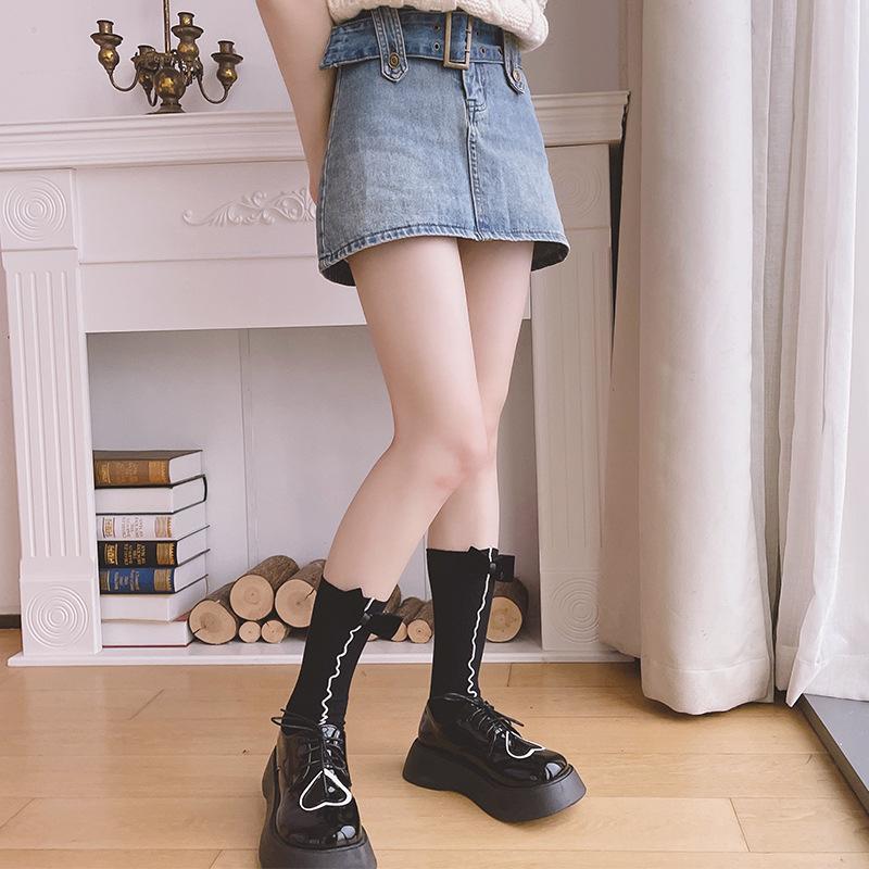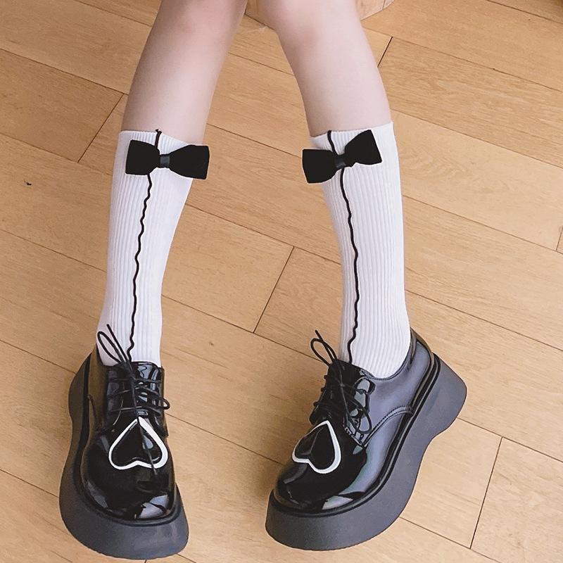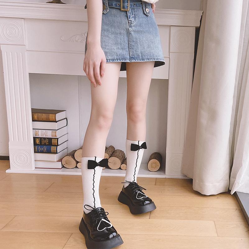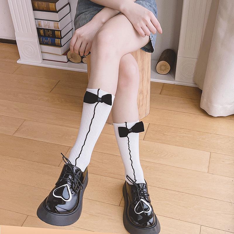 Calcetines japoneses de terciopelo con lazo y rayas verticales en la pantorrilla, de algodón con orejas en blanco y negro en contraste, cortos apilados JK