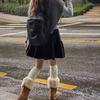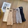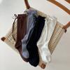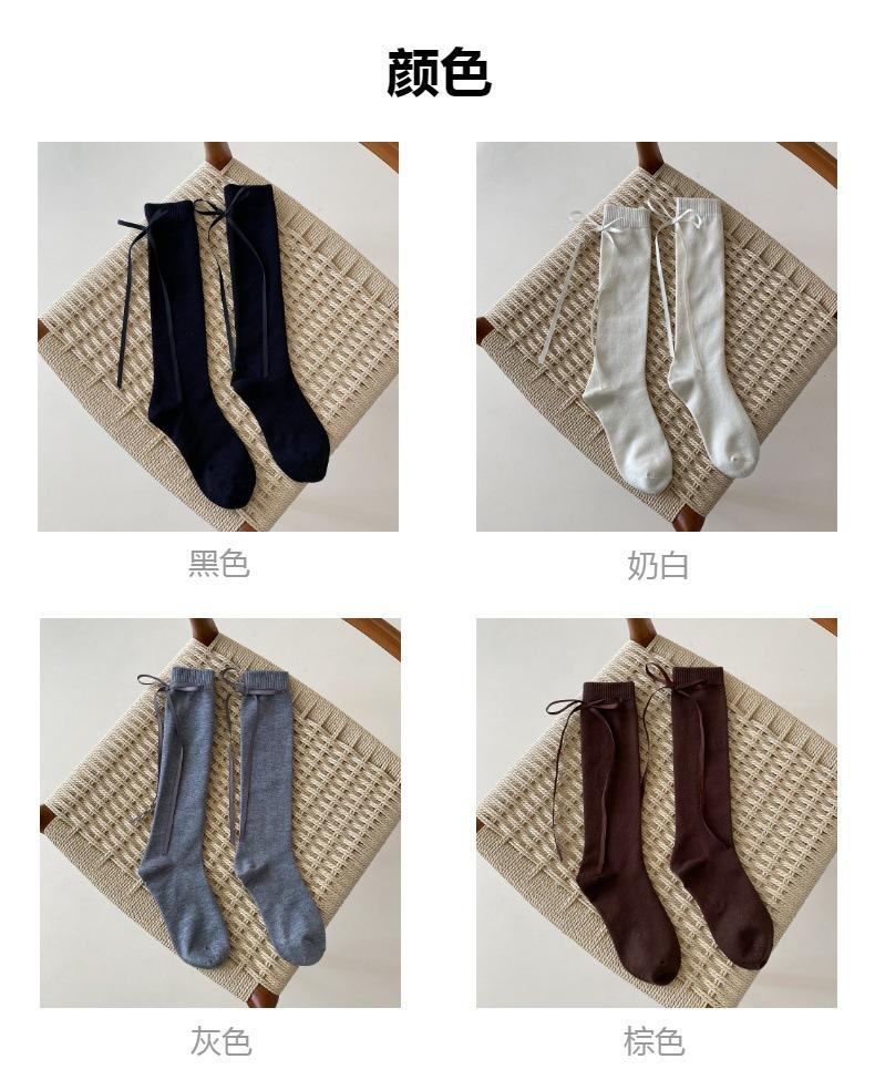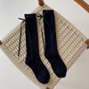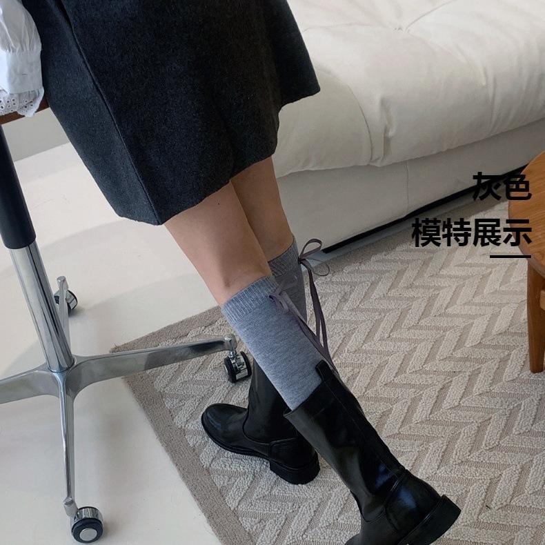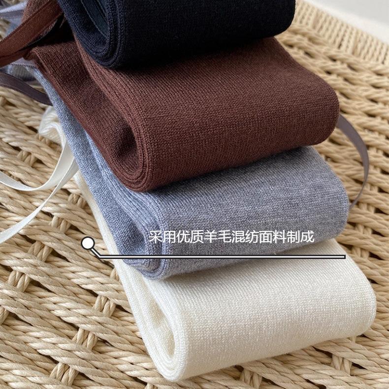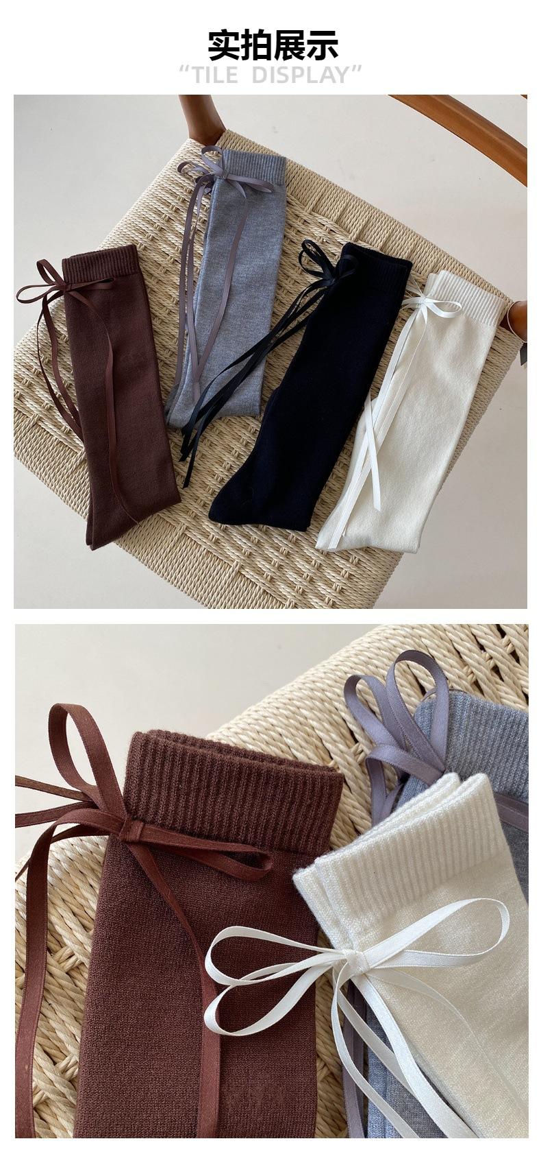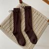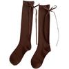 Calcetines de lana de color sólido para otoño e invierno para mujer, estilo coreano, con lazo, hasta la pantorrilla, marrón, blanco, dulces, con cinta, medias hasta la rodilla