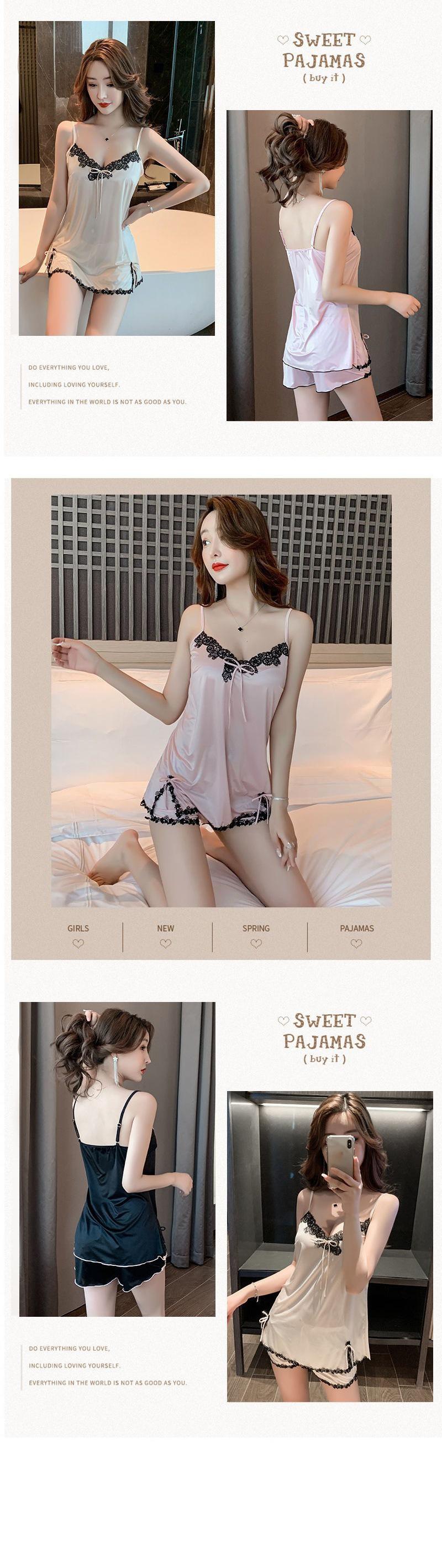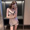 Pijama Blanco para Mujer Verano Seda de Hielo Tirantes Delgada Sexy Shorts Conjunto de Dos Piezas Mediana Edad Nuevo Verano Ropa para el Hogar