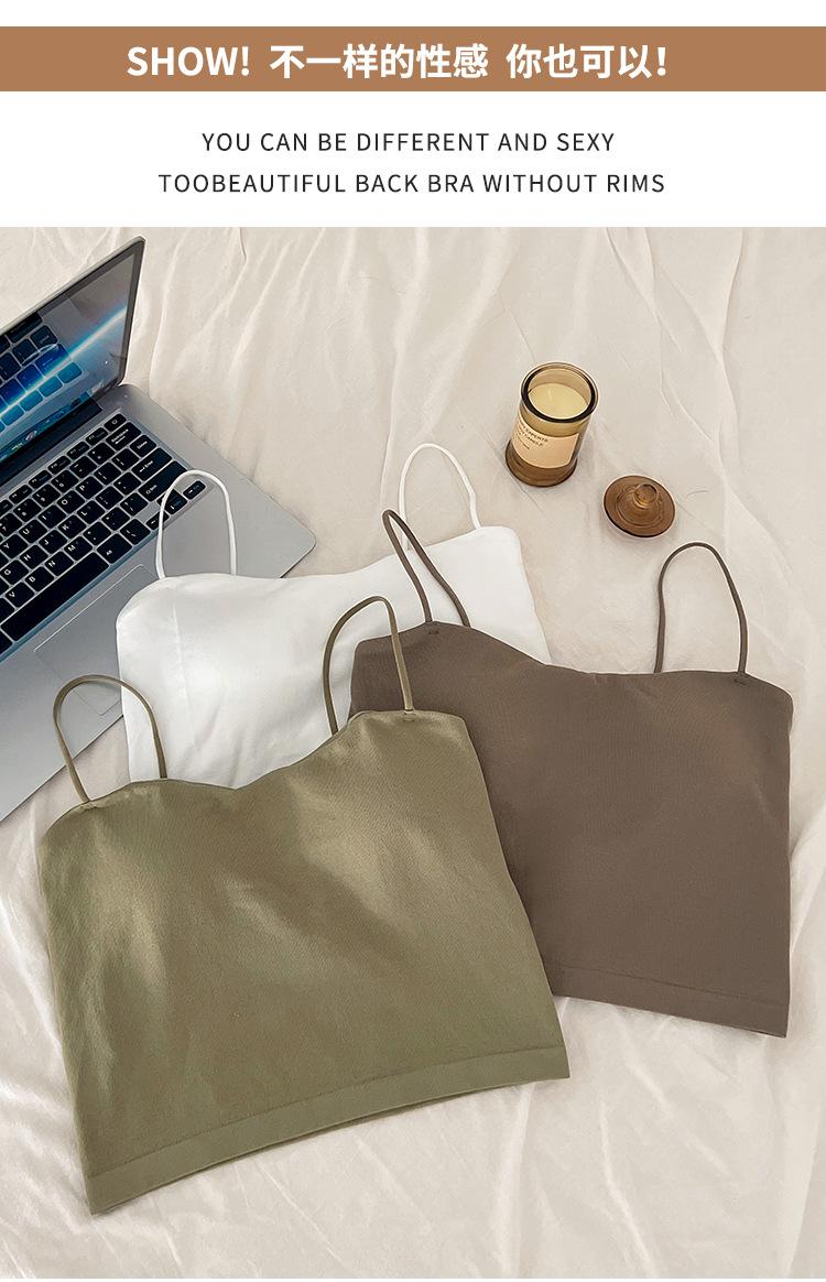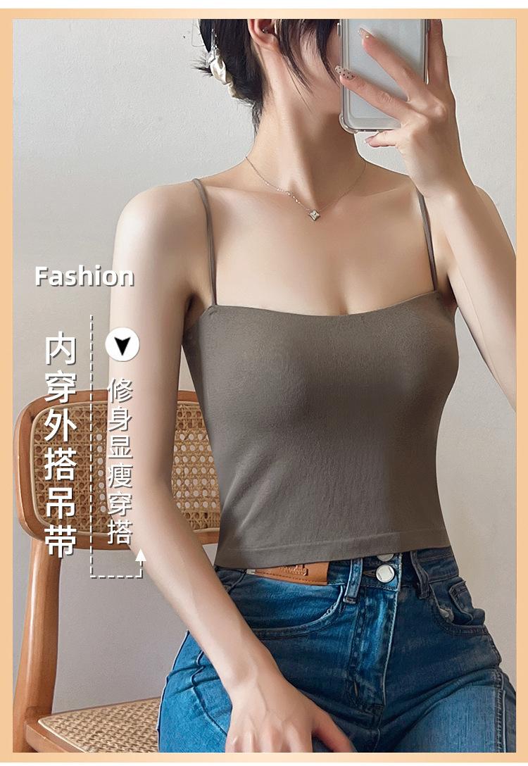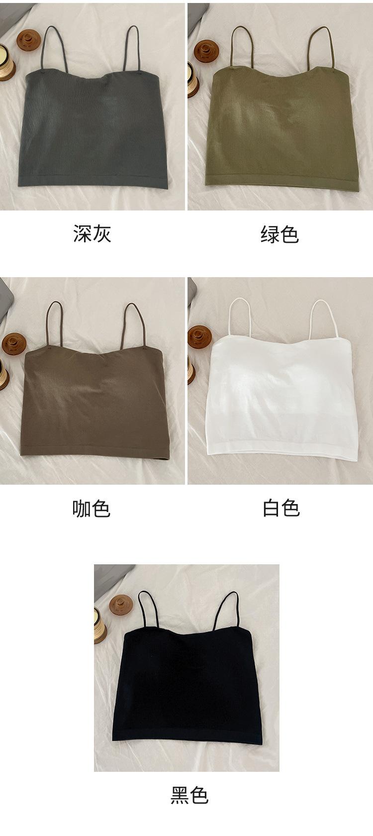 Top de tubo de una pieza con copa fija y tirantes finos para mujer, ropa interior deportiva, color liso
