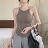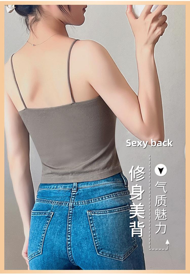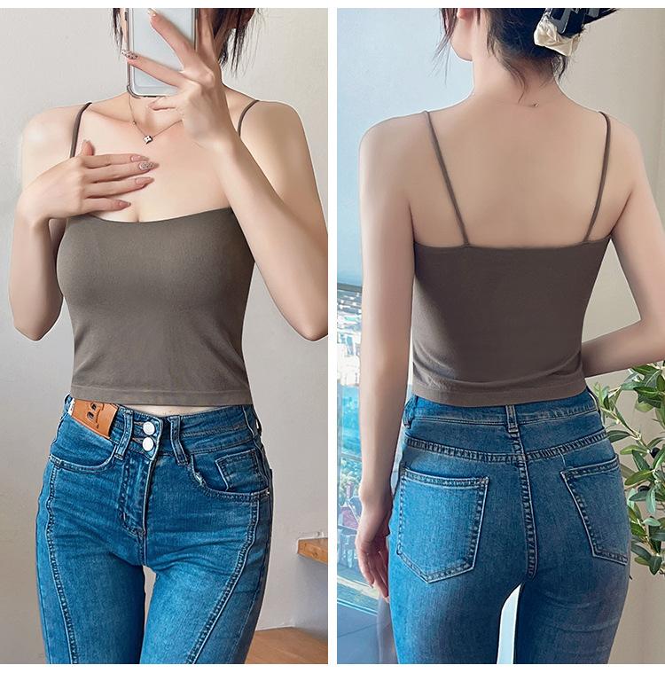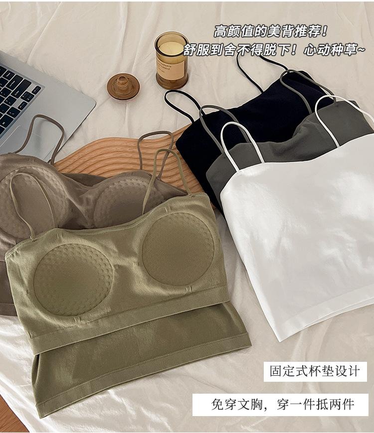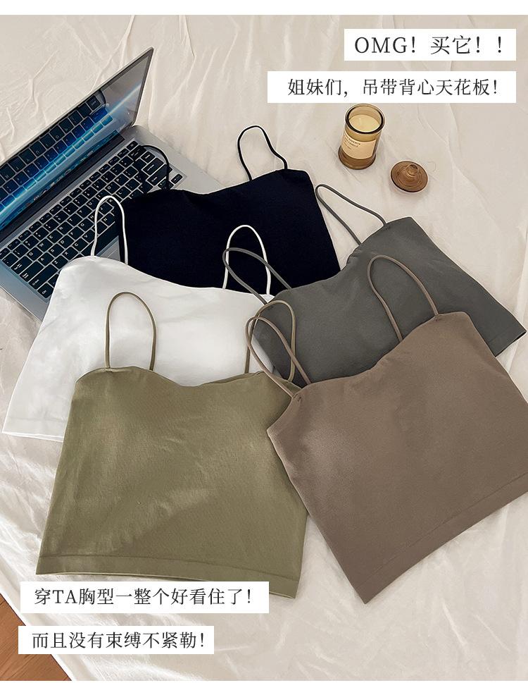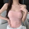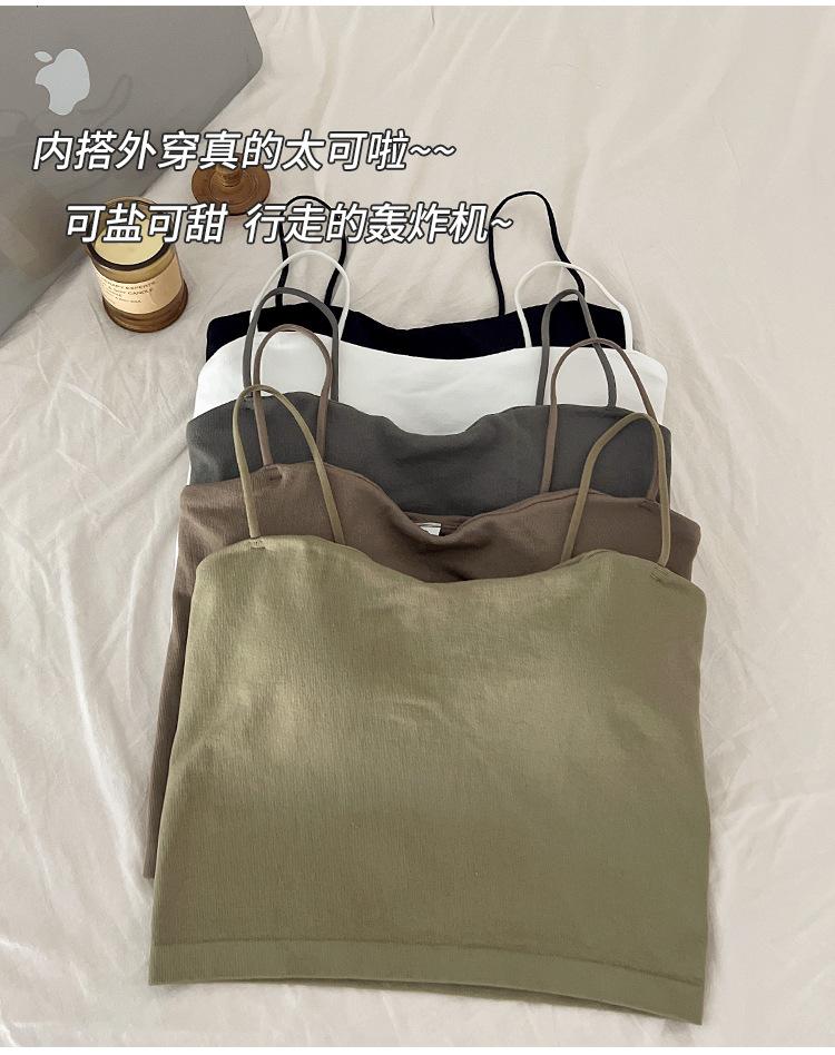 Top de tubo de una pieza con copa fija y tirantes finos para mujer, ropa interior deportiva, color liso