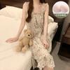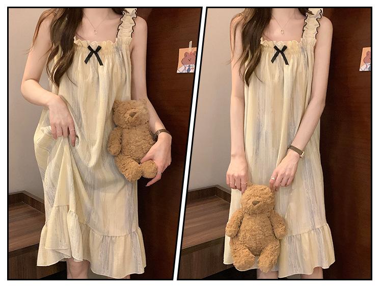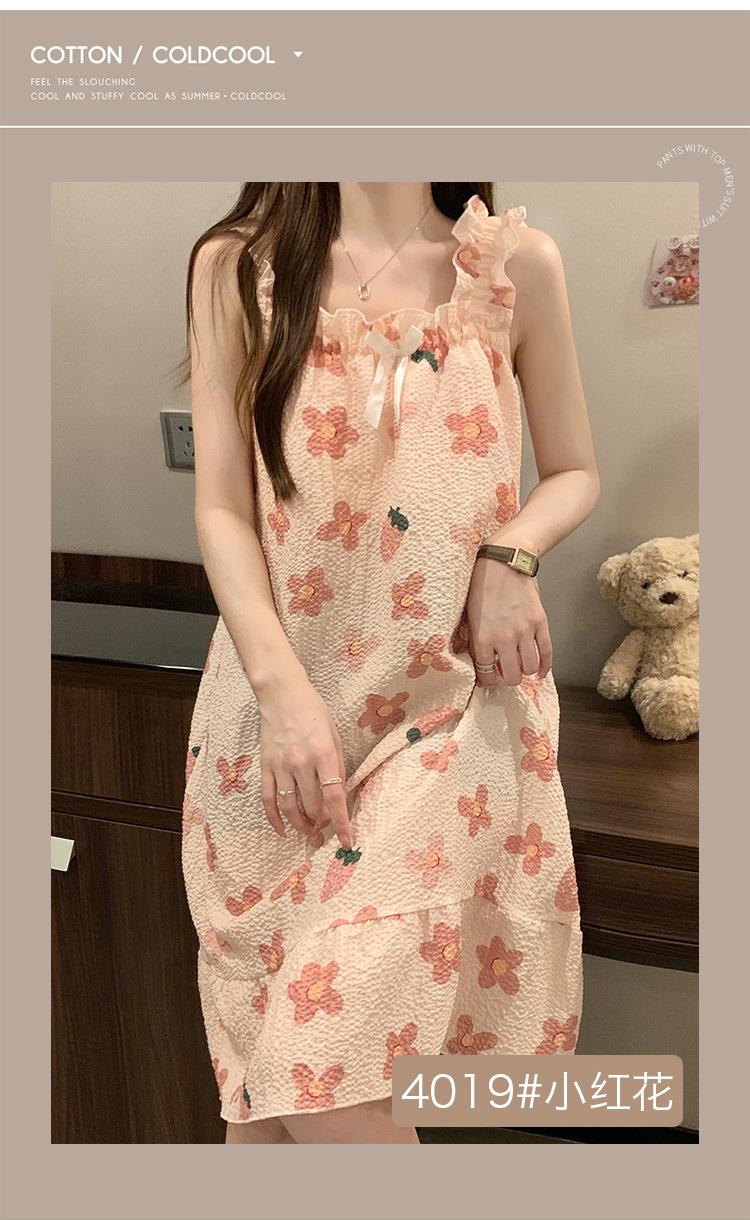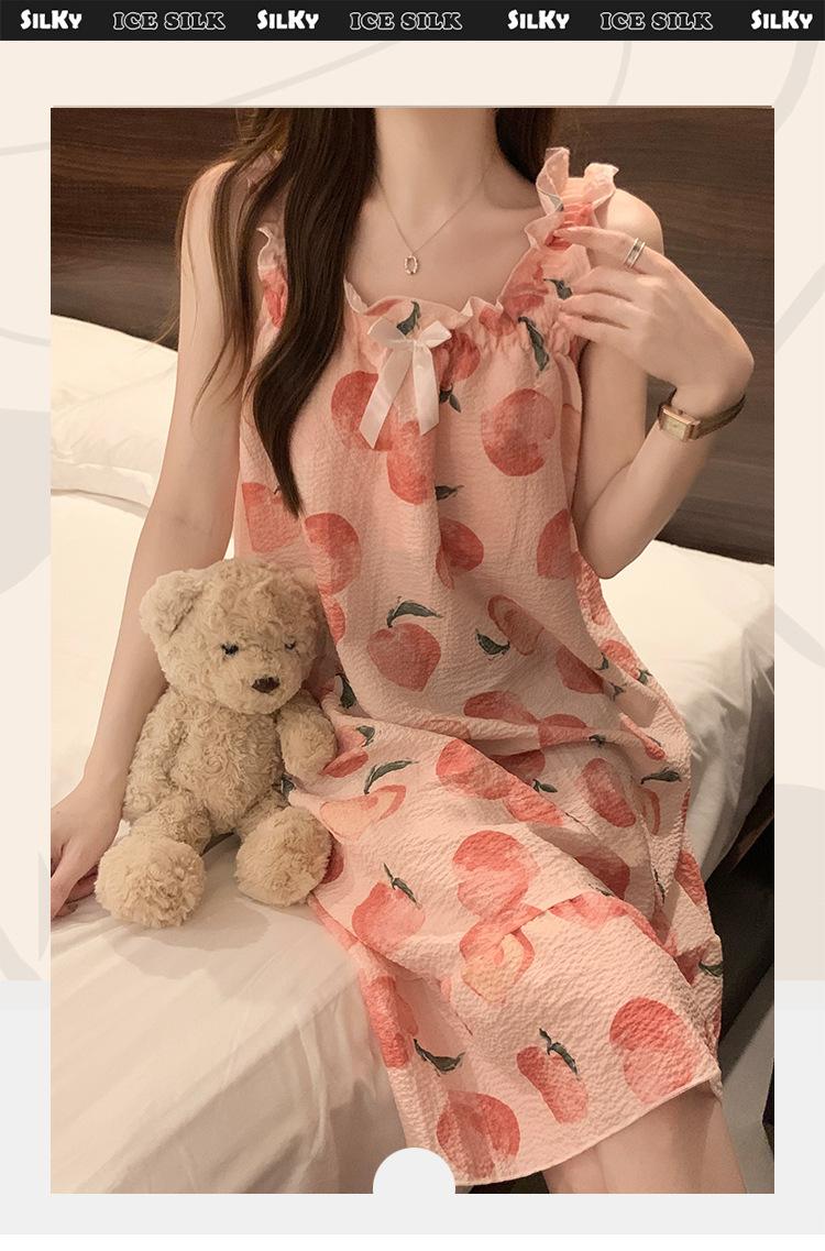 [con Almohadilla para el Busto] Camisón con Tirantes Pijama Dulce y Lindo Verano Sin Mangas Estilo Princesa Ropa de Casa para Niñas Se Puede Usar Afuera