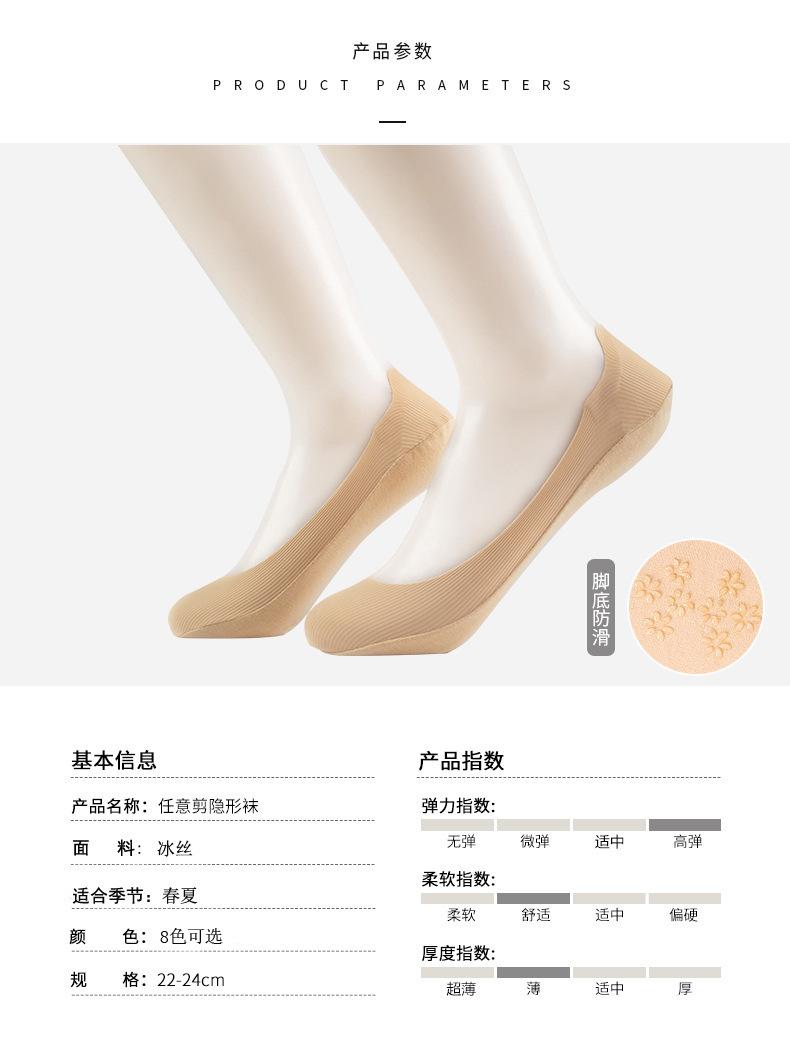 Calcetines invisibles de verano para mujer, con corte arbitrario, de hielo, de corte bajo, de silicona, antideslizantes, sin costuras, antideslizantes y transpirables.