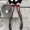 Medias de lunares con borde rojo para mujer, deseo puro, sexy, ultradelgadas, calcetines por encima de la rodilla, medias de seda negras, calcetines rojos hasta el muslo