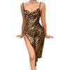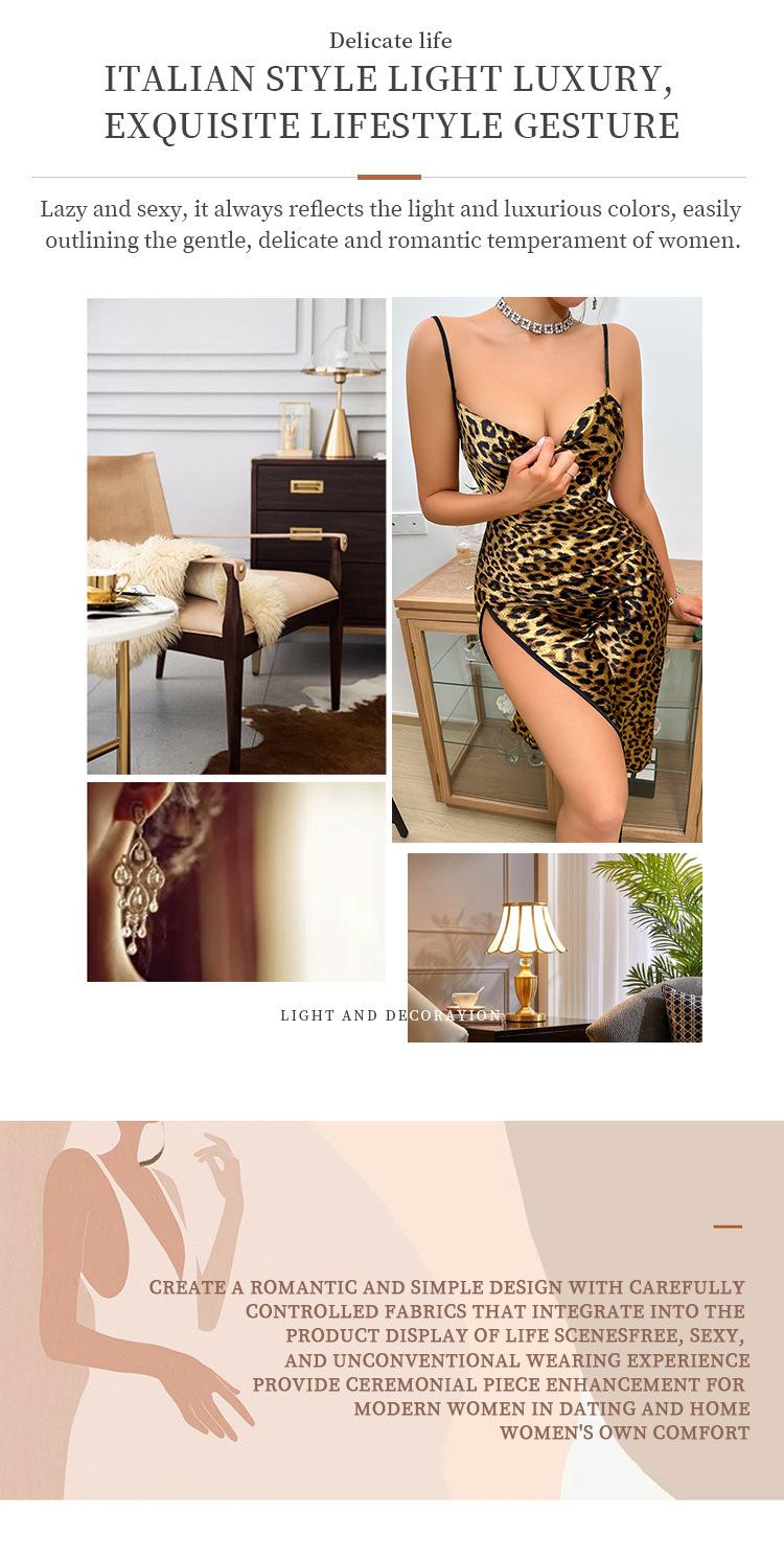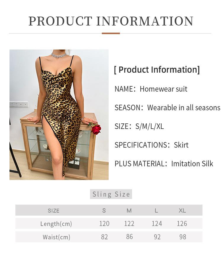 Camisón de Mujer con Estampado de Leopardo Tipo Seda Corto Sexy Pijama Primavera y Verano Pijama Sexy Cinturón con Cordones Cintura Ropa para el Hogar
