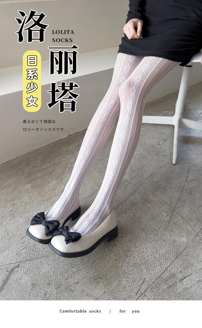 Medias blancas de primavera y verano JK Lolita japonesa rayas verticales flor pequeña lindas red huecas mayones fábrica mayoreo