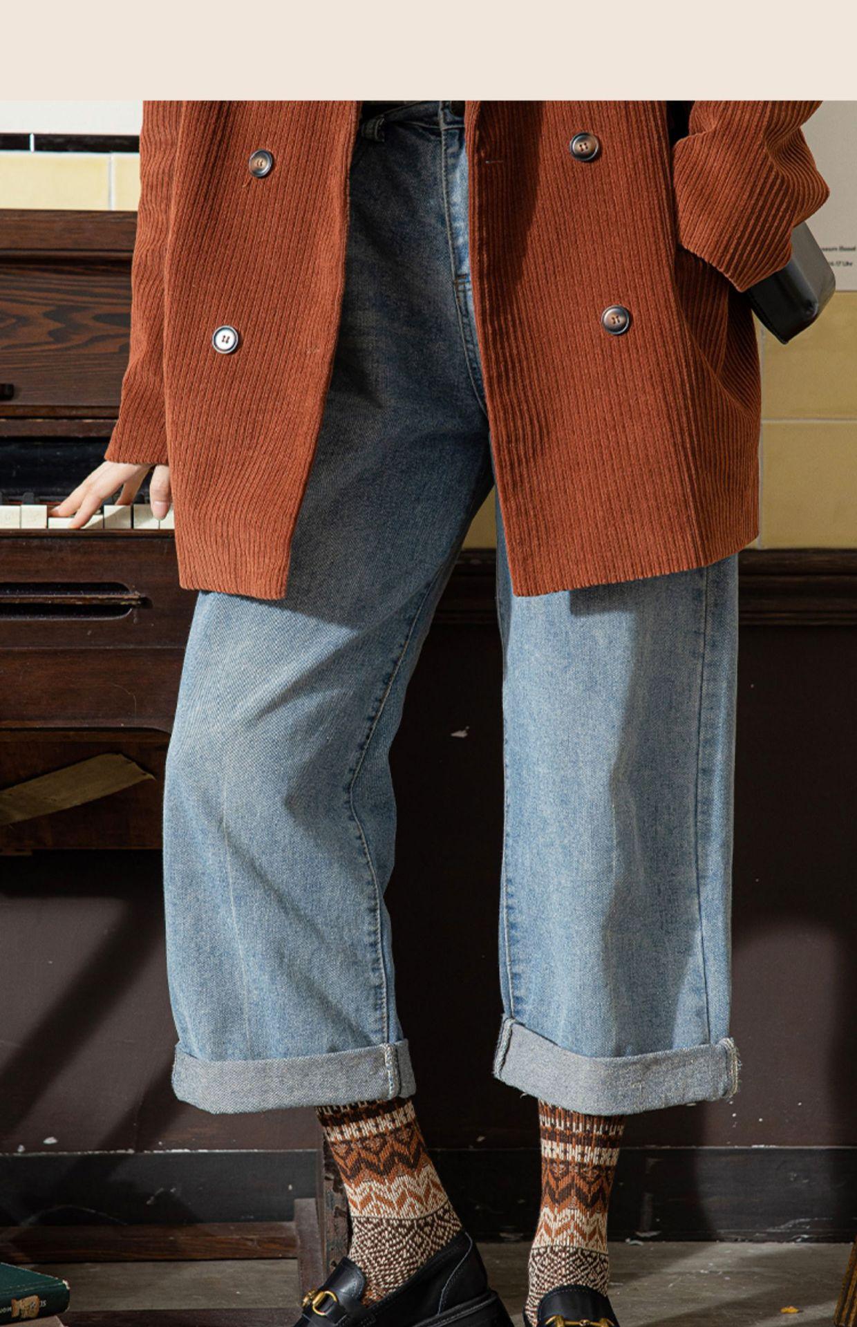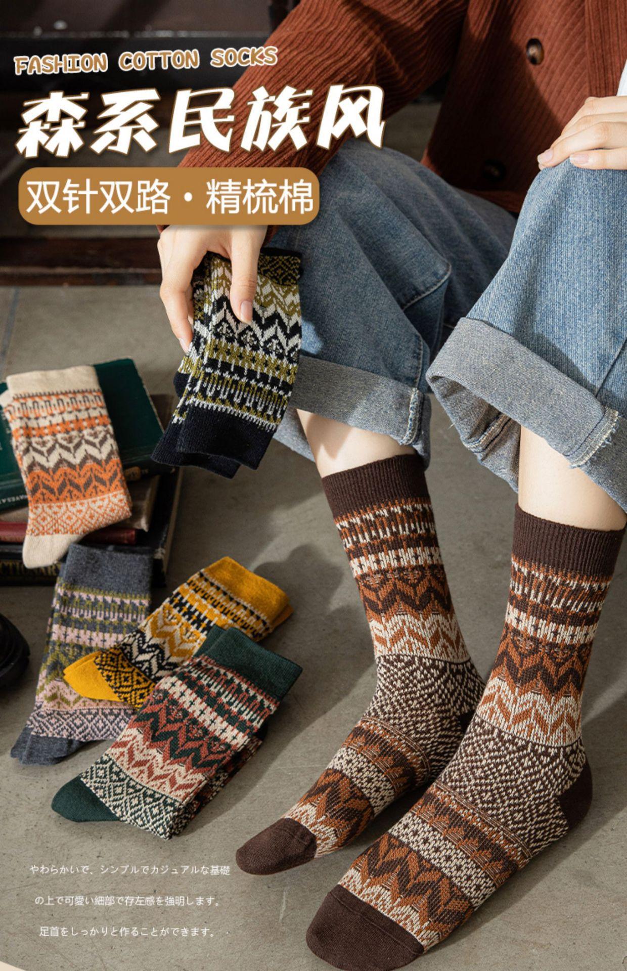 Calcetines de mujer de otoño e invierno, calcetines de algodón a media pantorrilla, calcetines de doble aguja y doble cara, estilo retro japonés, para uso exterior en primavera y otoño.