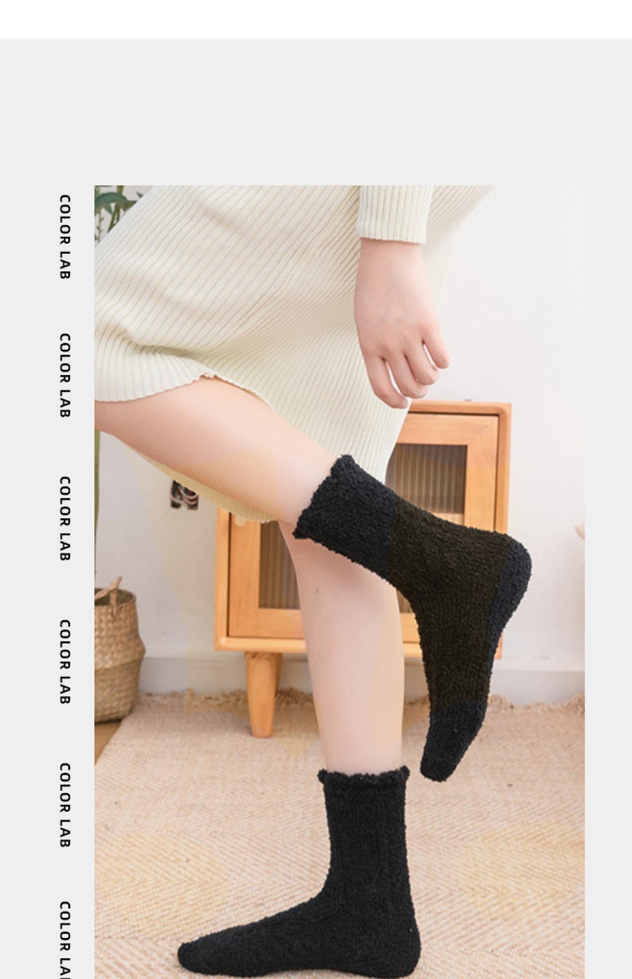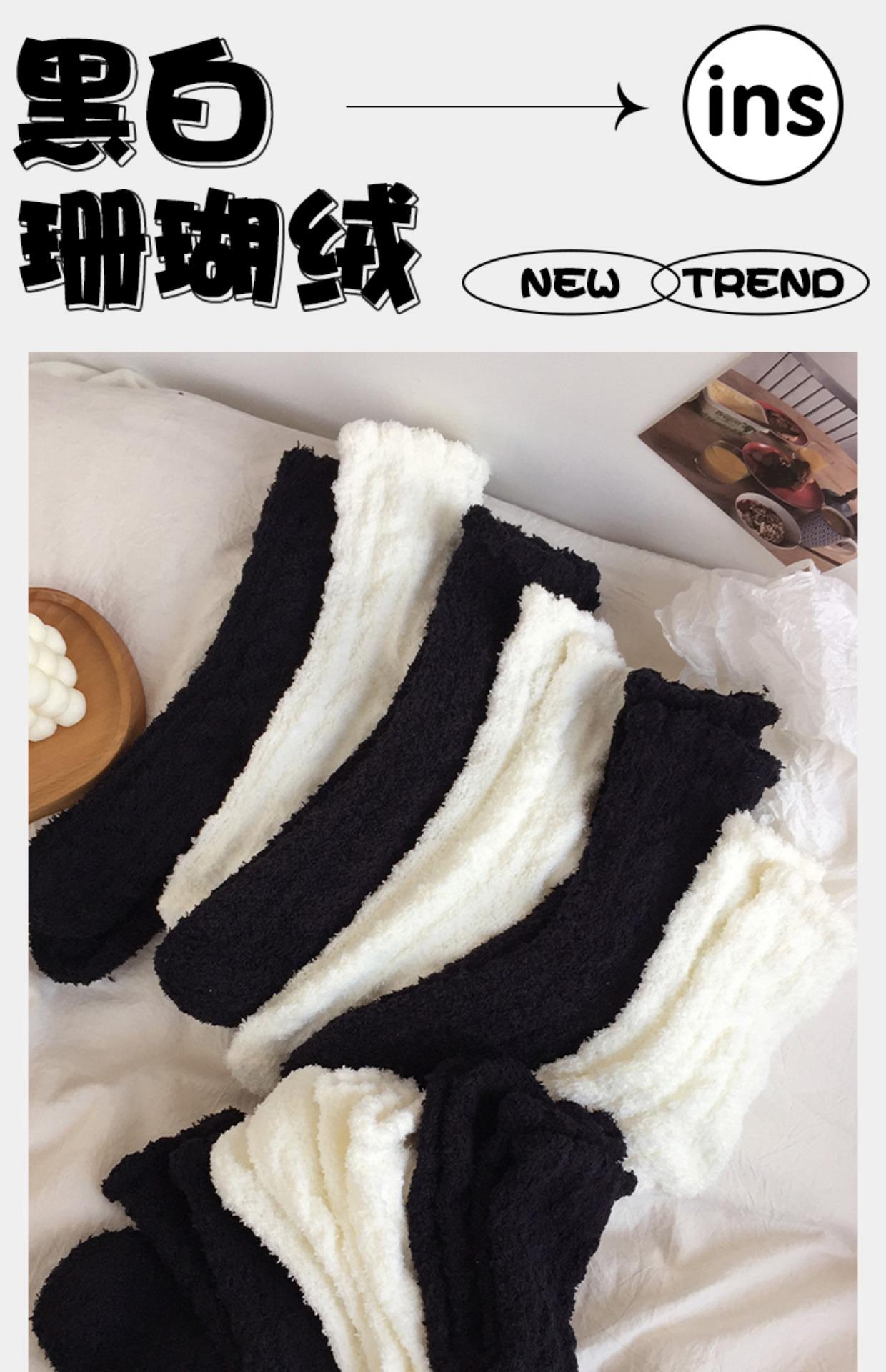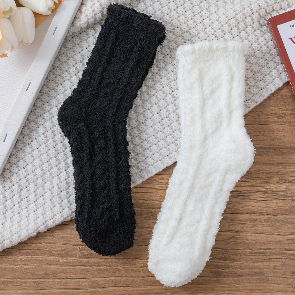 4 pares de calcetines de forro polar de coral negros y blancos para mujer, calcetines de media pantorrilla, calcetines de otoño e invierno con forro polar grueso para el hogar, cálidos y peludos para dormir