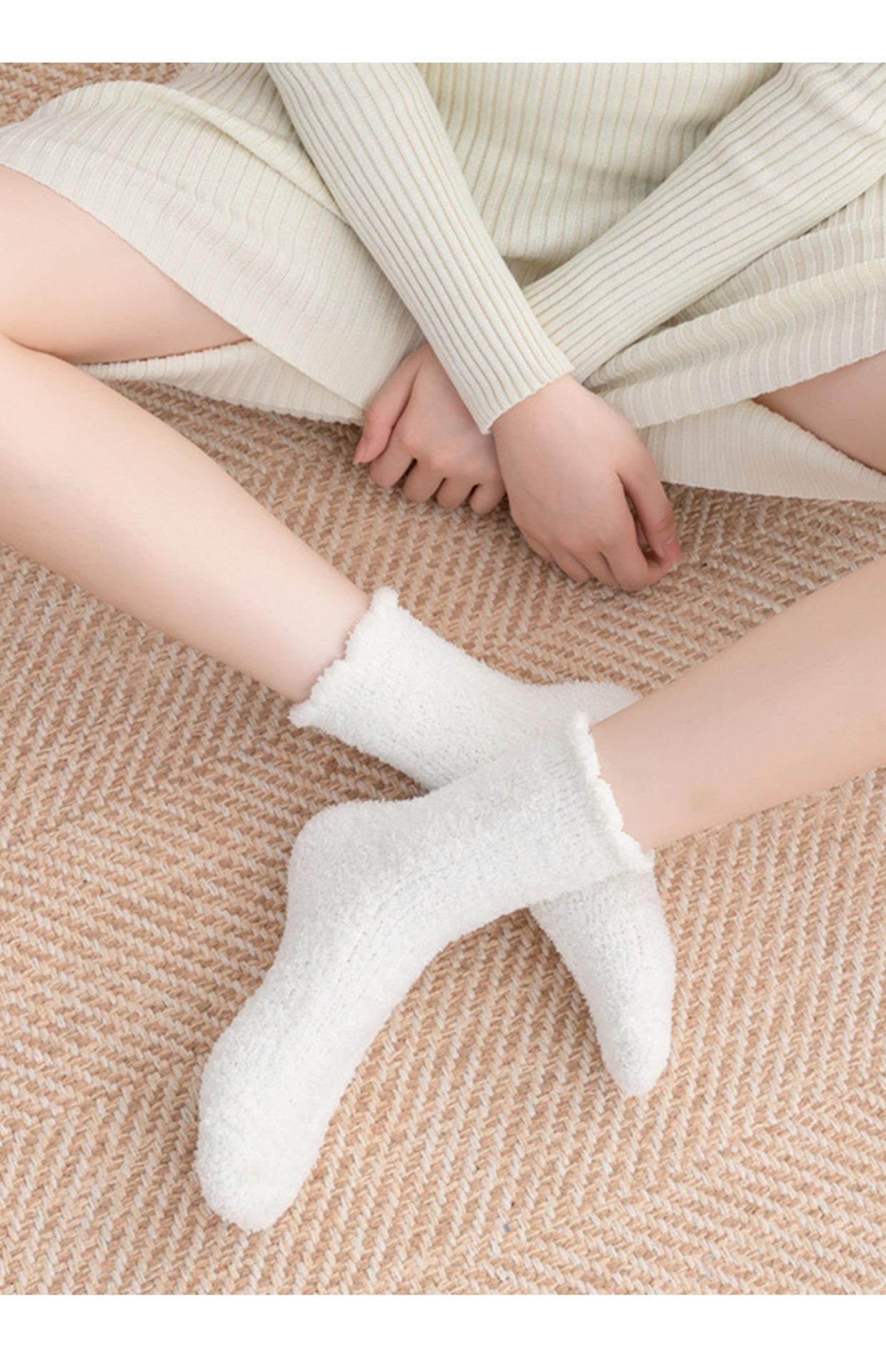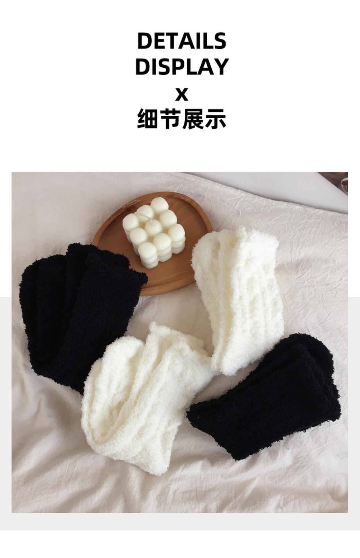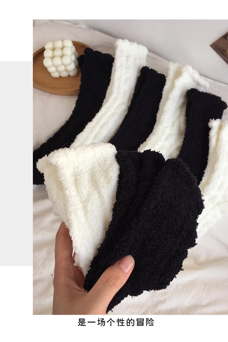 4 pares de calcetines de forro polar de coral negros y blancos para mujer, calcetines de media pantorrilla, calcetines de otoño e invierno con forro polar grueso para el hogar, cálidos y peludos para dormir